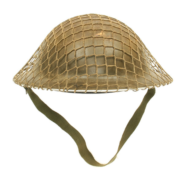 WWII Canadian Army Reproduction MKII MK2 Enlisted Brodie Helmet with Reproduction Helmet Net – Field Textured Finish This is a reproduction of the WWII Canadian Army MKII MK2 Enlisted Brodie Helmet as issued by the British Army. The helmet is complete with liner, early style MK II chinstraps, reproduction British Army