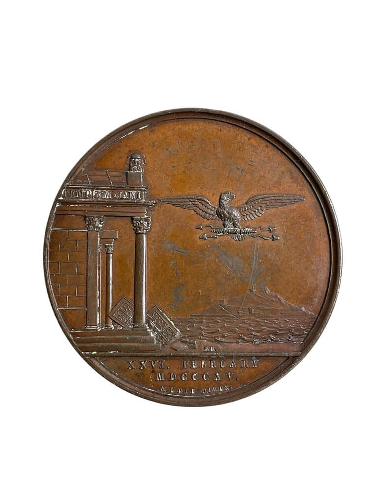 The 1820 Congress of Vienna Bronze Medallion is a historical artifact commemorating the diplomatic assembly in Vienna post-Napoleonic era. Made of sturdy bronze material, the medallion features intricate engravings and designs, relevant to the political event. Its ownership offers a tangible link to Europe’s pivotal history, primarily centered on peacemaking and territorial reconfiguration.