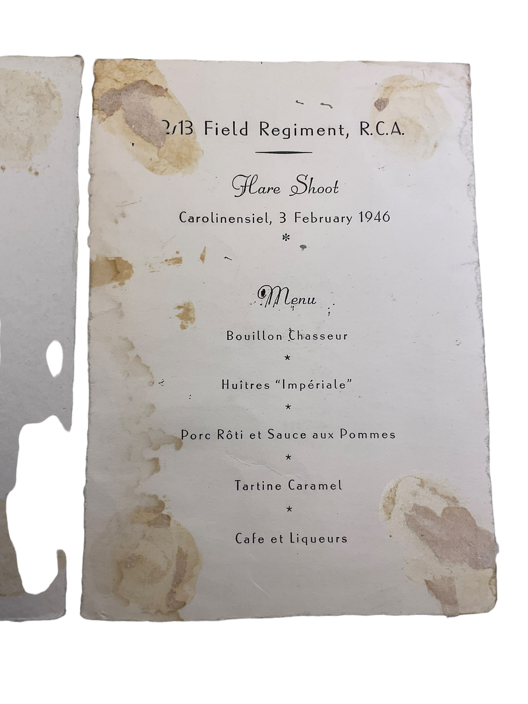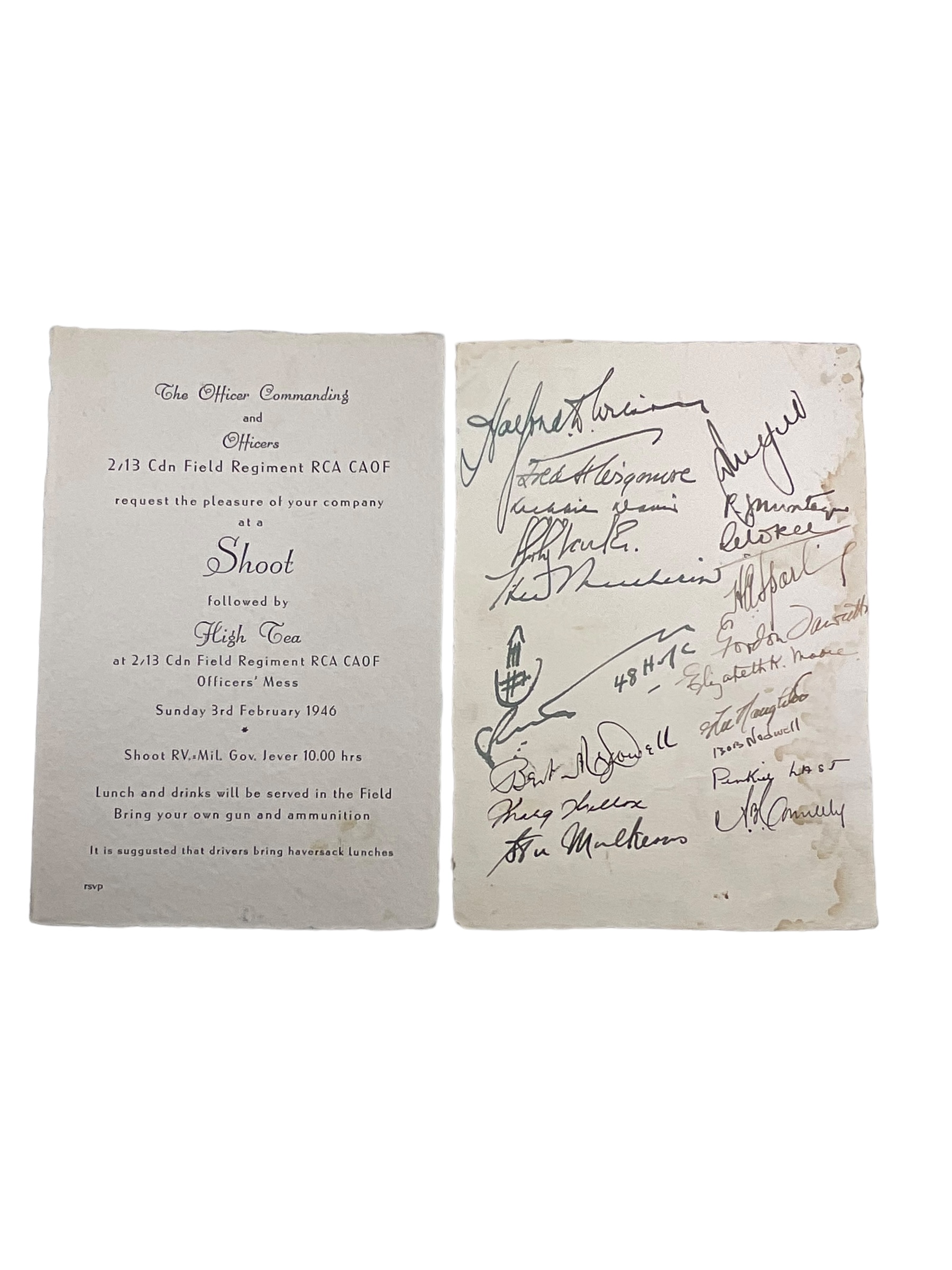 2/13th Canadian Field Artillery Signed Officers Mess Dinner Shoot