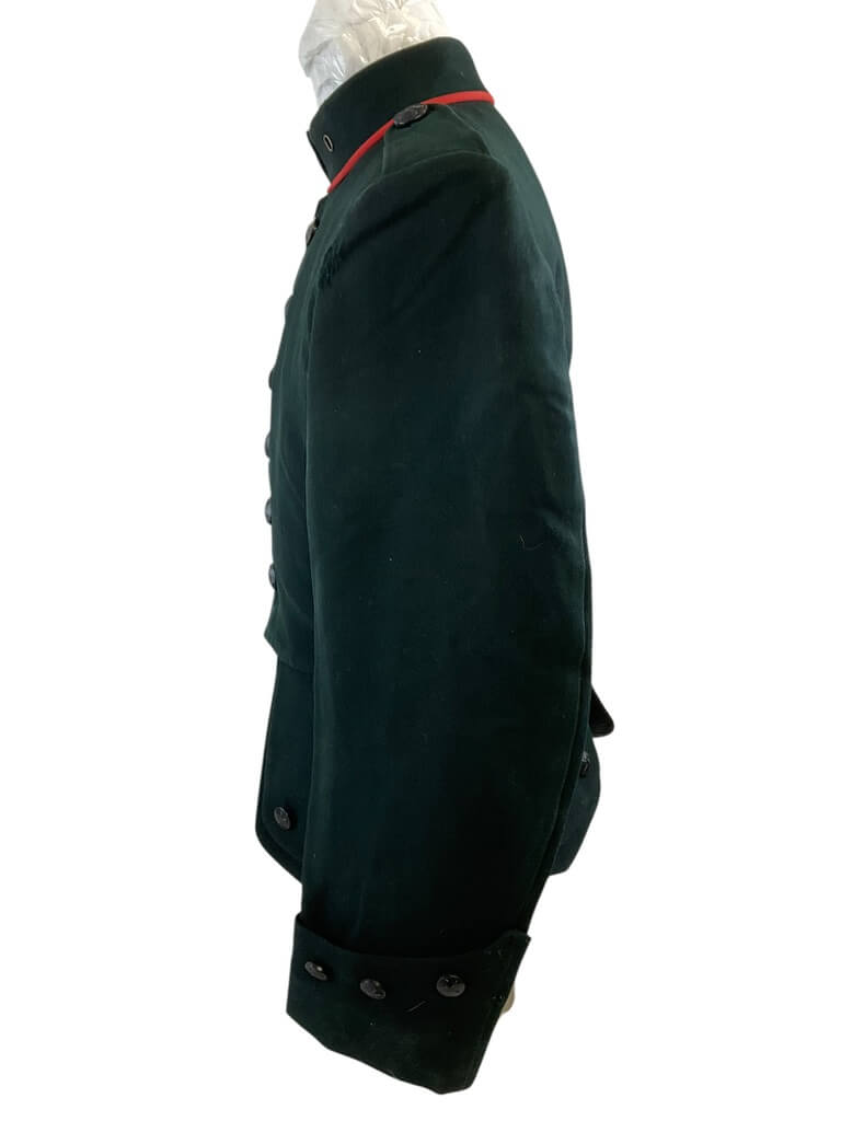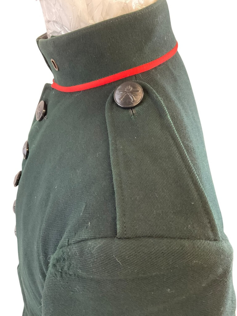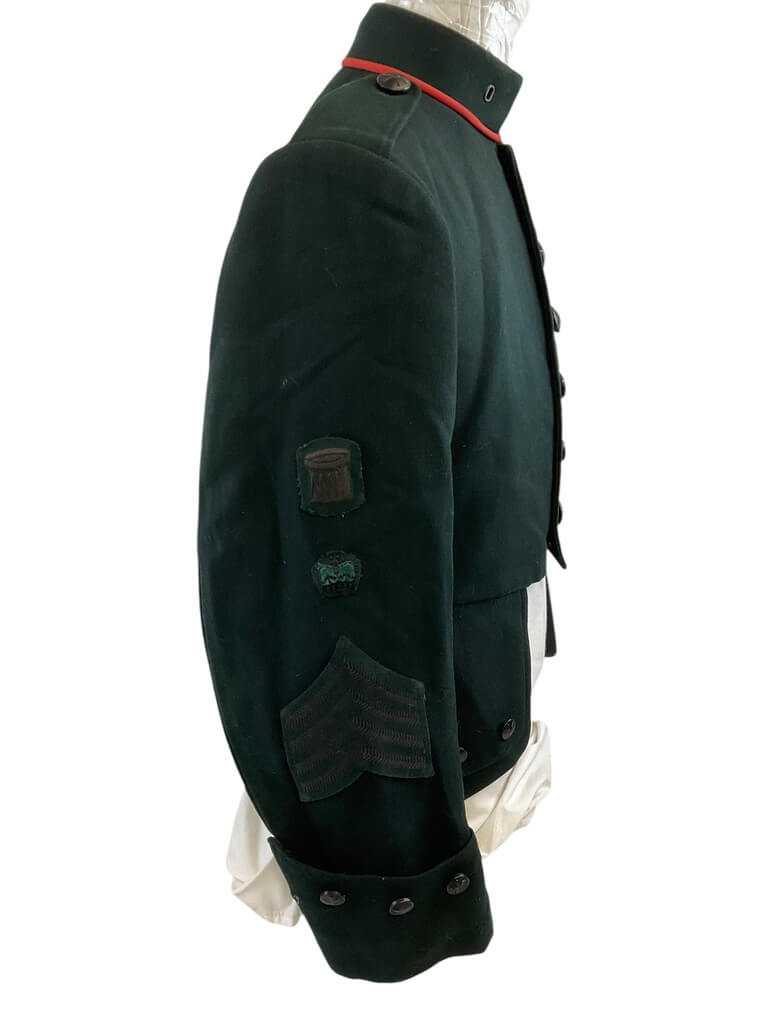 The “2nd Gurkha Drummers Cutaway Tunic” is an authentic piece of military regalia, steeped in history and tradition. This stunning tunic is a representation of the attire worn by drummers of the 2nd Gurkha Rifles, a celebrated regiment of the British Army. Customarily worn during formal and ceremonial occasions, this unique garment features a cutaway design, allowing for better mobility while playing the drum. The tunic is typically made from rich, dark green wool, adorned with intricate gold braiding and button details, signifying rank and regiment. Often, it also includes the regimental crest or other symbolic embroidery. The 2nd Gurkha Drummers Cutaway Tunic is not just a uniform, but a symbol of bravery, honour and the rich heritage of the Gurkha soldiers. It’s a unique collector’s item for military enthusiasts, historians, or those with a deep appreciation for the Gurkha tradition.