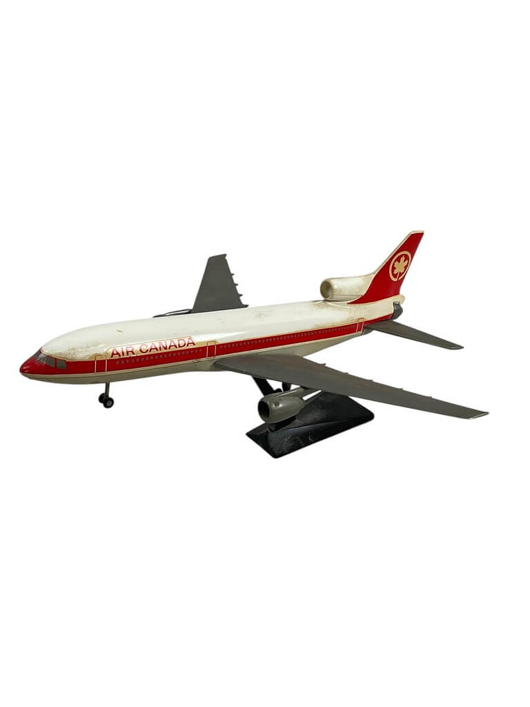 The Air Canada DC10 Plastic Display Model is a detailed, miniature replica of the renowned McDonnell Douglas DC-10 aircraft, specifically in the iconic Air Canada livery. Crafted primarily out of durable, high-quality plastic, this display item is designed for longevity and precision. Measuring approximately 30 cm in length and boasting meticulous detailing, the model accurately portrays the aesthetics and design of the original DC-10, down to the airline insignias and window placements. Its intricate crafting offers an enriched study of the aircraft’s unique construction and layout. Originating from the golden age of passenger air travel, the DC-10 model serves as a visual history lesson in aviation technology and design. This collectible is intended for mature collectors, aviation enthusiasts or historians, not recommended for children due to its delicate components. As a display model, it does not incorporate moving parts or interactive features. This product serves as a testament to the craftsmanship behind model aircraft and the storied legacy of the DC-10.