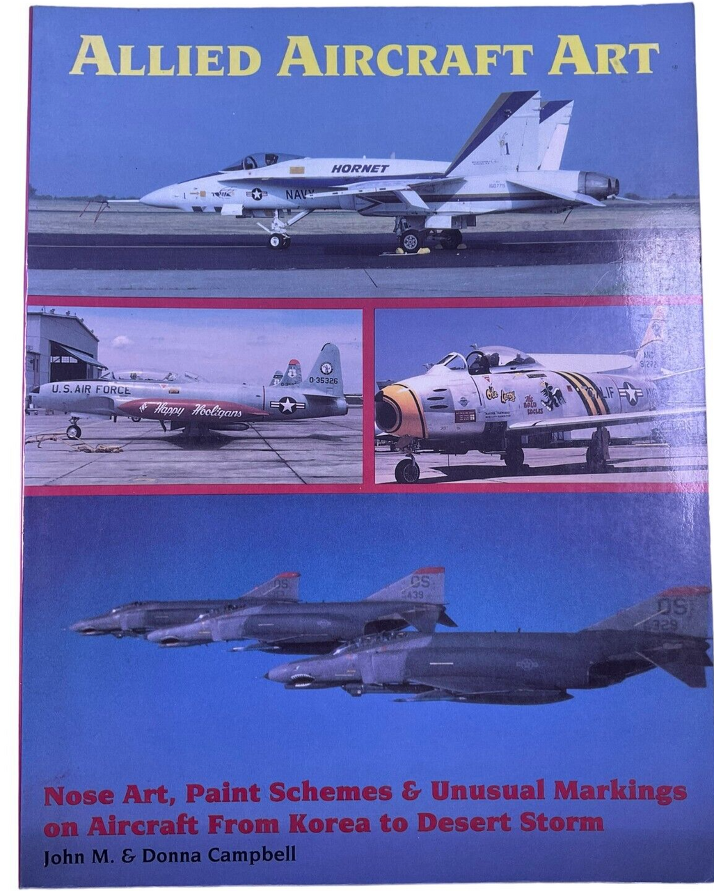 This is a used softcover Allied Aircraft Art Nose Art Pain Schemes Unusual Markings on Aircraft from Korea to Desert Storm John M and Donna Campbell Reference Book. Total of 64 pages with lots of pictures and information.