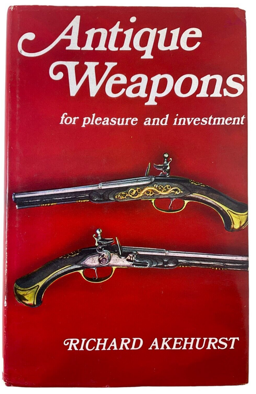 This is a used hardcover Antique Weapons for Pleasure and Investment Richard Akehurst Reference Book.  Total of 174 pages with lots of pictures and information.