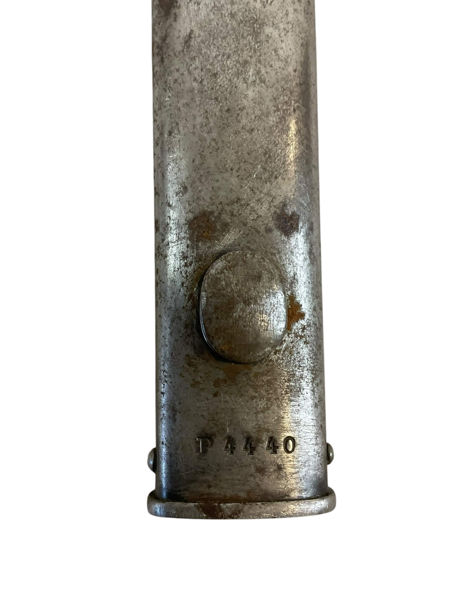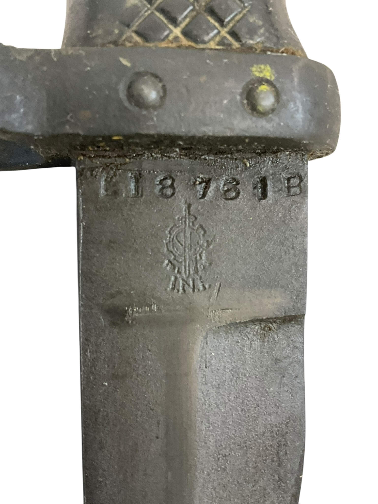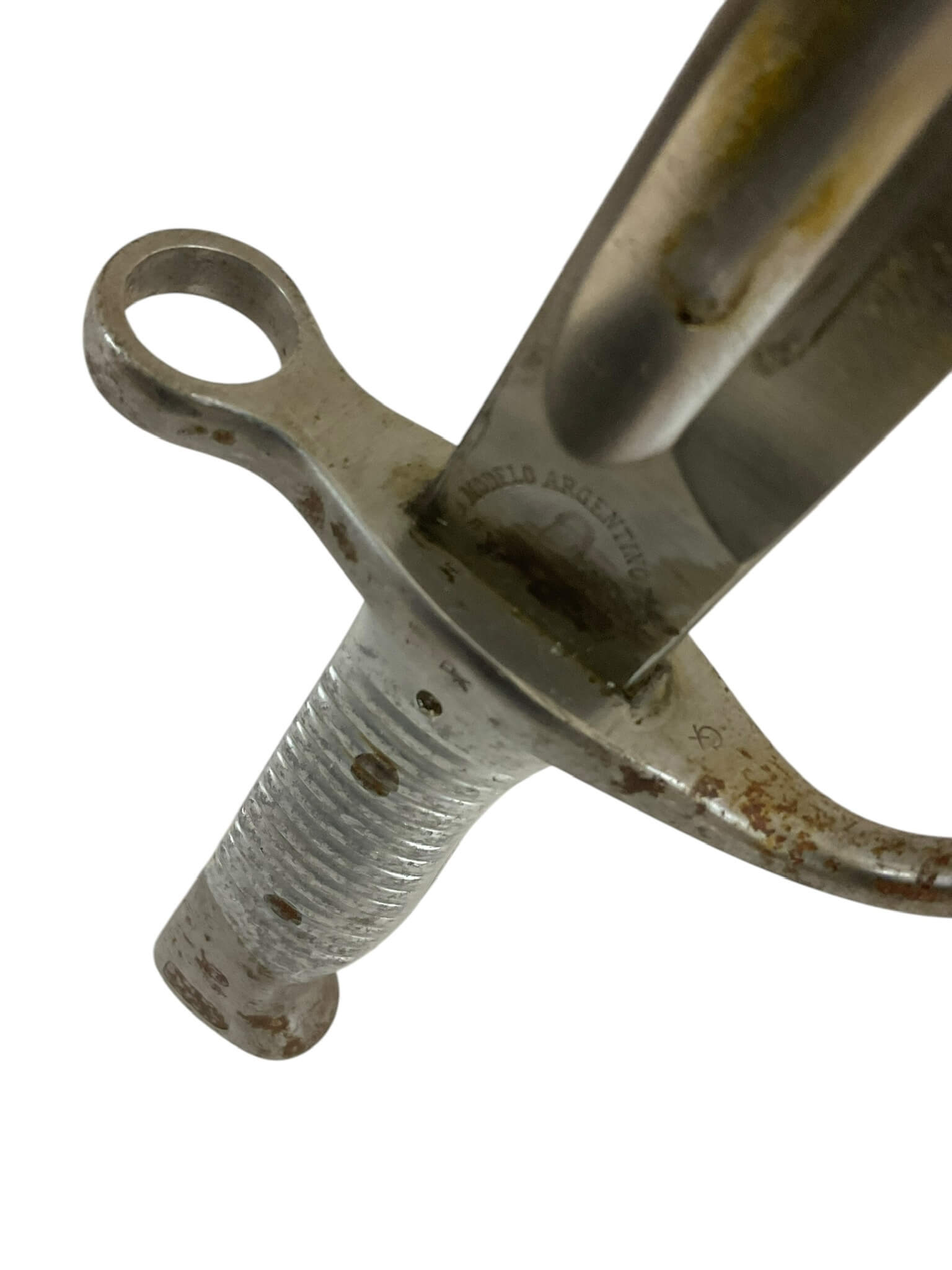 The ‘Argentine Army M1891 Mauser Bayonet With Scabbard’ is an exceptional piece of military history, originating from the late 19th century. This bayonet is a product of the renowned German arms manufacturer, Mauser, and was primarily used by the Argentine Army. The M1891 Mauser Bayonet is known for its robust construction and sharp, durable blade. It features a distinctive, single-edged blade that is both functional and aesthetically pleasing. The accompanying scabbard, typically made from leather or metal, ensured that the bayonet could be safely and conveniently carried. It’s not just a weapon, but a symbol of Argentine military history and German craftsmanship. This item is a must-have for military enthusiasts and collectors of historical artifacts.