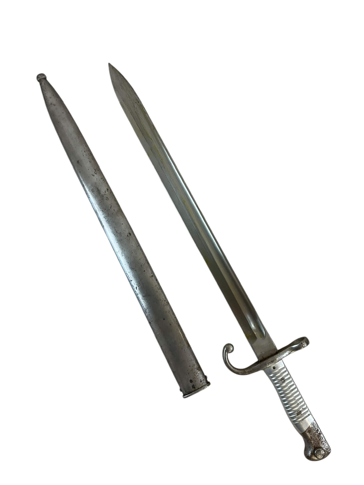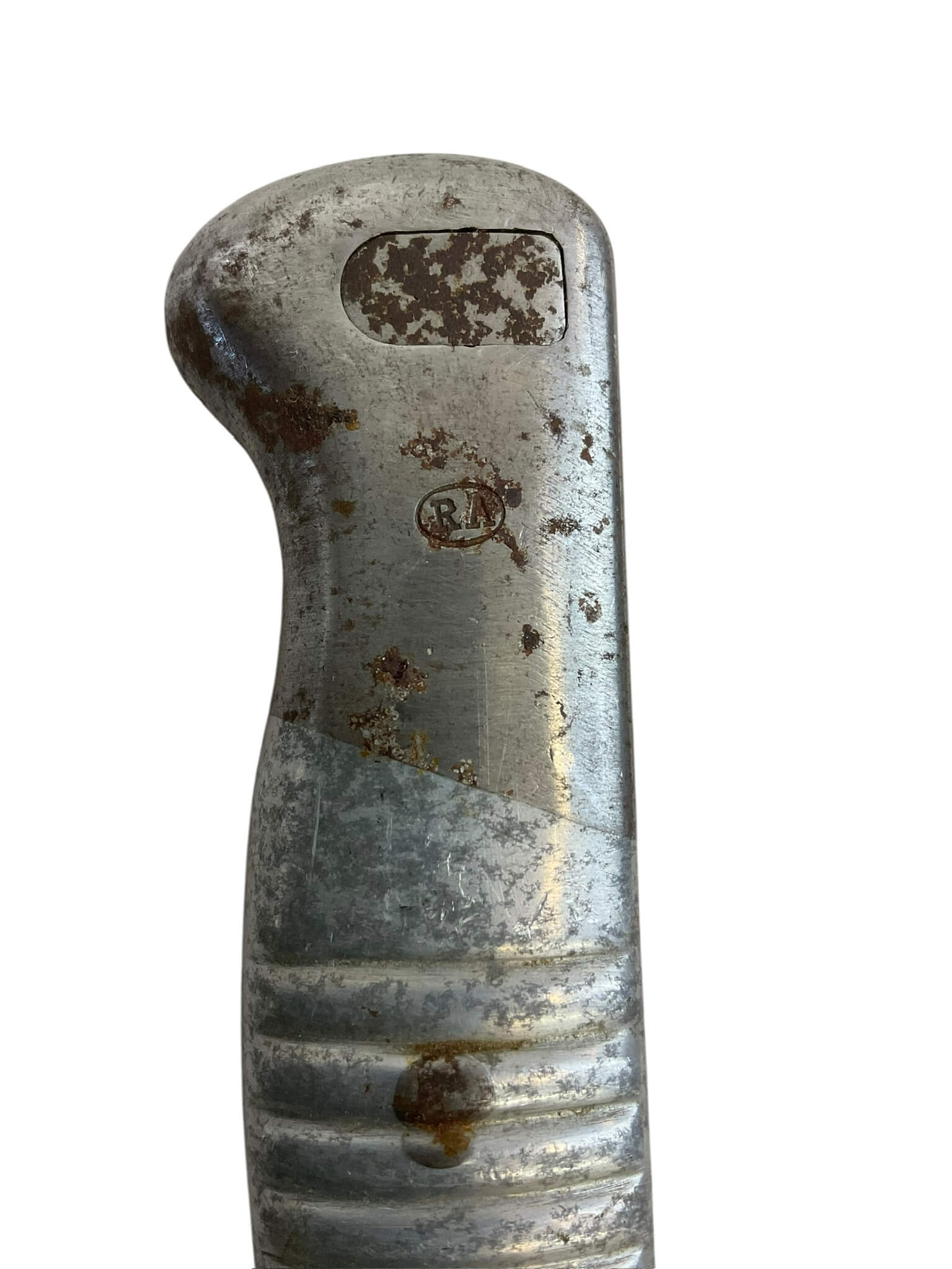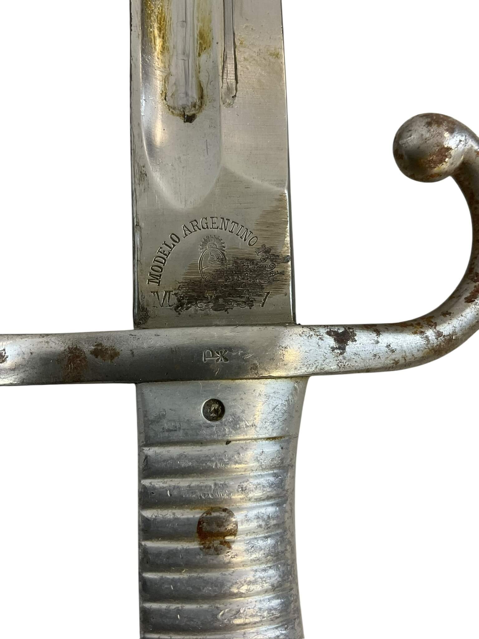 The ‘Argentine Army M1891 Mauser Bayonet With Scabbard’ is an exceptional piece of military history, originating from the late 19th century. This bayonet is a product of the renowned German arms manufacturer, Mauser, and was primarily used by the Argentine Army. The M1891 Mauser Bayonet is known for its robust construction and sharp, durable blade. It features a distinctive, single-edged blade that is both functional and aesthetically pleasing. The accompanying scabbard, typically made from leather or metal, ensured that the bayonet could be safely and conveniently carried. It’s not just a weapon, but a symbol of Argentine military history and German craftsmanship. This item is a must-have for military enthusiasts and collectors of historical artifacts.