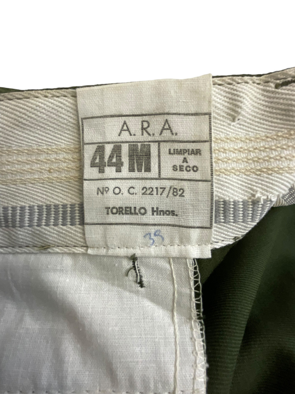 This uniform set consists of an authentic Argentinian Marine jacket and trousers, originally issued during the Falklands War, dated 1981. Both pieces are constructed from durable and weather-resistant materials, designed to withstand the harsh conditions of the South Atlantic. The jacket features multiple pockets for practicality, reinforced stitching, and epaulets, reflecting the marine’s rank and regiment. The trousers come with reinforced knees, adjustable waistbands, and ample pocket space, ensuring maximum functionality and mobility in rugged terrain. This historically significant uniform offers a glimpse into the military apparel used by Argentine forces during the conflict. Ideal for collectors, historians, or enthusiasts, it represents a tangible piece of history from a pivotal moment in the late 20th century. The set remains in good condition and retains its original markings and tags, providing authentic details and a genuine connection to the past.