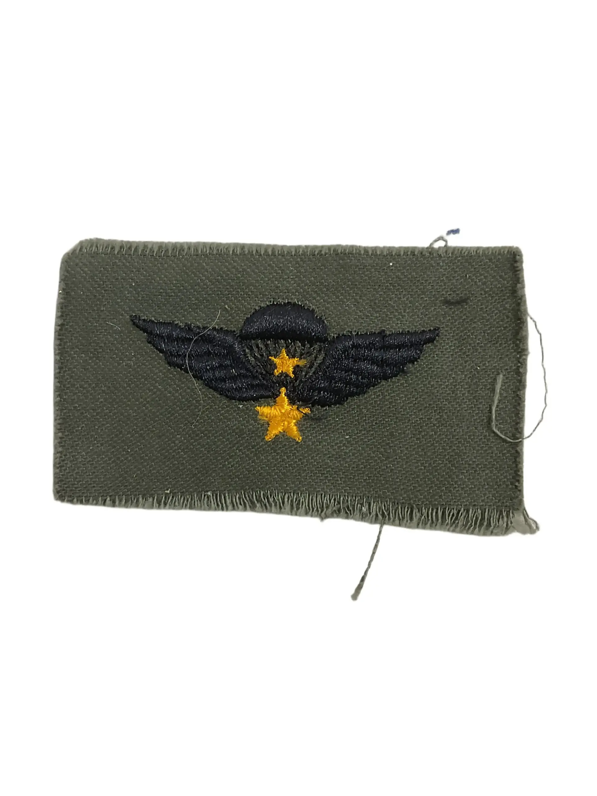 The Army of the Republic of Vietnam Subdued Senior Paratrooper Jump Wing is a military insignia awarded to paratroopers of the Army of the Republic of Vietnam (ARVN) who completed senior-level parachute training and operational requirements. This insignia was typically issued during the Vietnam War era, specifically to denote higher proficiency and experience in airborne operations beyond basic qualification. The subdued version features a darkened finish, designed to reduce visibility and reflection in combat or field environments, as was standard for combat uniforms. The insignia displays a central parachute flanked by stylized wings, with a star above the parachute, which indicates senior qualification. Such wings were worn on uniforms to visually communicate the wearer’s specialized airborne status and advanced training to both fellow soldiers and commanding officers. Original examples are sought by collectors of Vietnam War militaria and those studying ARVN history and insignia.