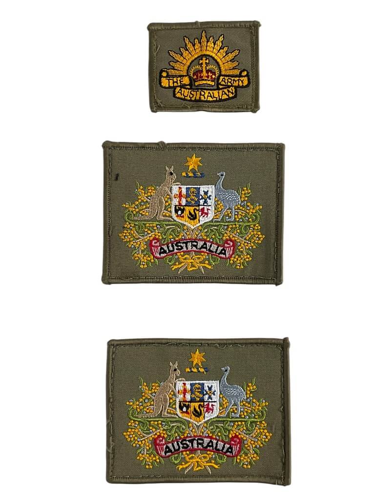 Australian Army Patches X 3 comprises a set of three original cloth insignia associated with the Australian Army. These patches were typically worn on the uniform to denote unit affiliation, rank, or specialist qualifications. Each patch in this set varies in design, color, and insignia, reflecting the specific roles or regiments within the Australian Army. Materials commonly include durable woven or embroidered cotton thread, designed for visibility and resilience in field conditions. The dimensions and shapes of the patches can differ, including variations such as rectangular, circular, or shield-like forms, depending on their designated use. These patches are representative of standard-issue military accoutrements from the Australian Army, serving both as identification markers and as historical artifacts. Collectors, historians, and researchers may find these patches valuable for study or display related to Australian military history and uniform evolution throughout various periods of service.