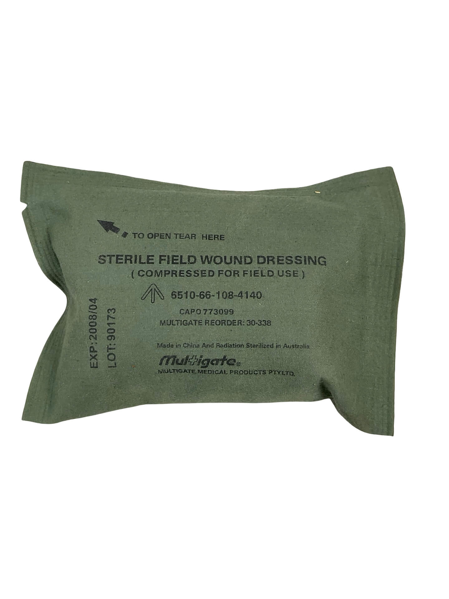 The Australian Army Sterile Field Wound Dressing Shell, offered here in its original unopened packaging, is a standard-issue medical supply used by Australian military personnel. Designed for use in field conditions, this dressing provides immediate care for a variety of wounds by maintaining a sterile environment to reduce the risk of infection. The exterior of the package generally includes labeling with instructions for use, lot numbers, and date of manufacture, allowing for identification and ensuring compliance with military medical standards. Its sealed condition preserves the integrity and sterility of the contents, which typically consist of an absorbent pad and bandage secured within a protective outer shell. These dressings were distributed as part of personal first aid kits and larger field medical supplies. The item reflects the evolving standards in battlefield medical care and provides insight into the equipment issued to Australian service members. Suitable for collectors, researchers, or those studying historical military medical practices.