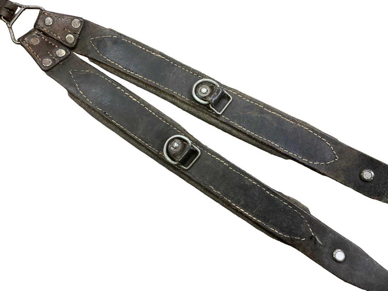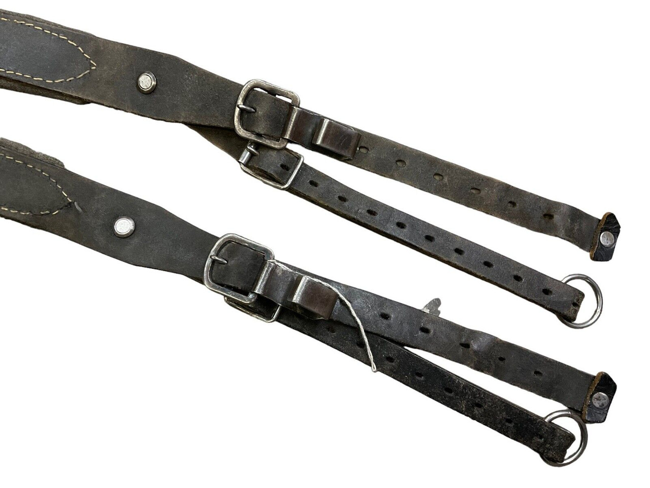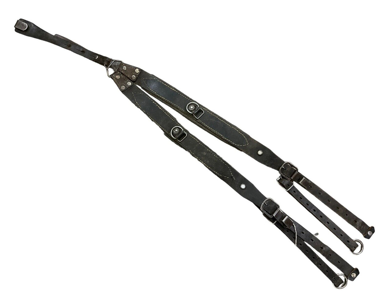 Austrian Army Black Leather Belt Support Y Straps Introducing the Austrian Army Black Leather Belt Support Y Straps – a versatile and robust addition to any outdoor or military gear collection. Crafted from premium black leather, these Y straps are designed to provide exceptional durability and support in demanding conditions. Originally used by the Austrian Army, these straps ensure your belt and equipment stay securely in place, offering maximum comfort during extended wear. The adjustable design allows for a customized fit, accommodating various body sizes and gear configurations. Ideal for military reenactments, outdoor expeditions, or as an authentic collectible, these Y straps combine historical value with practical utility. With high-quality stitching and sturdy metal hardware, the Austrian Army Black Leather Belt Support Y Straps are built to last, making them an essential accessory for anyone who values function and reliability in their equipment. Elevate your gear setup with this piece of military history and experience the blend of tradition and functionality.