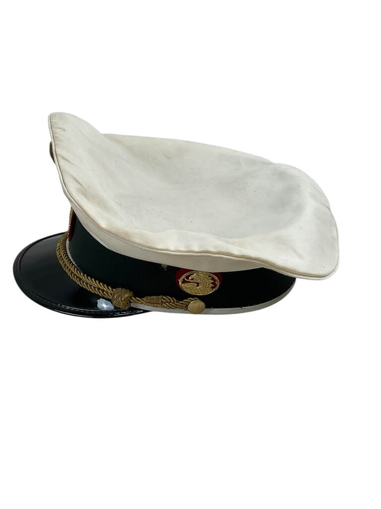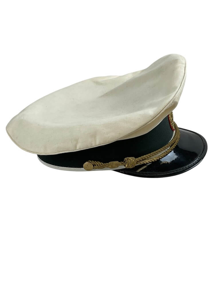 The Austrian Police Peak Cap Hat Size 58 is an authentic piece of official Austrian police uniform. This stylish and durable cap features the traditional Austrian police insignia on the front, a distinguishing characteristic that sets it apart. Made with high-quality materials, this cap guarantees longevity and comfort. Its dark blue color and glossy black peak add to the overall aesthetic, making it a fashionable accessory. The size 58 ensures a snug fit for individuals with a head circumference of approximately 58cm. This cap not only offers a unique addition to any collection of international police memorabilia but can also serve as a noteworthy accessory for costume parties or historical reenactments. Whether for collection, function, or style, the Austrian Police Peak Cap Size 58 is a rare find.