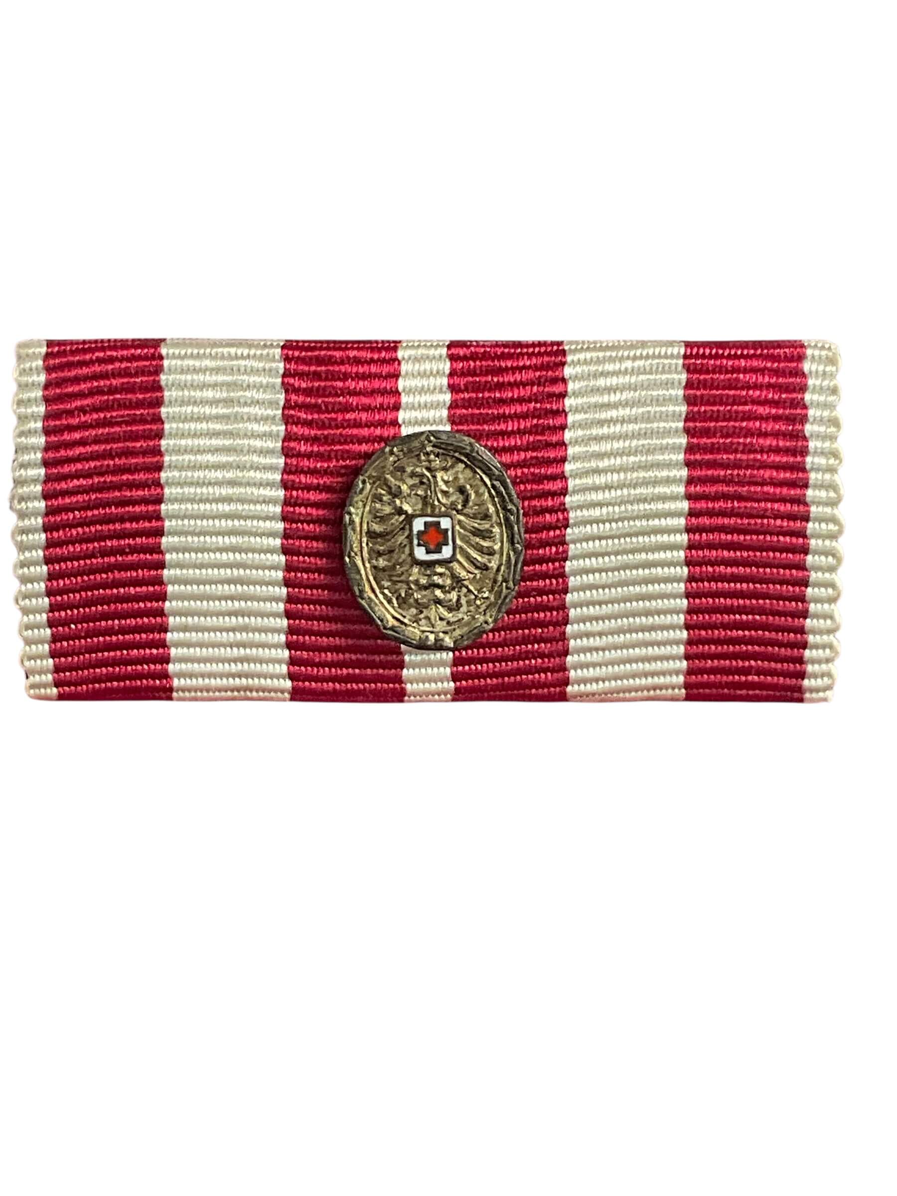 The Austrian Red Cross Medal Box and Ribbon Bar is a set associated with the Austrian Red Cross, established to recognize contributions to humanitarian and medical efforts. This offering includes the medal’s original presentation box and the corresponding ribbon bar. The medal typically features the distinctive Red Cross emblem and is awarded for services related to health care, disaster relief, or other charitable activities conducted under the auspices of the Austrian Red Cross. The presentation box is designed for safe storage and dignified display, often lined and constructed to fit the medal securely. The accompanying ribbon bar allows for uniform wear and is crafted in matching colors and design elements according to the official regulations. Such sets are of interest to collectors of military and humanitarian decorations, providing insight into Austria’s system of honors and the role of medical organizations in national service. This item reflects the tradition of recognizing non-combatant service in Austria.