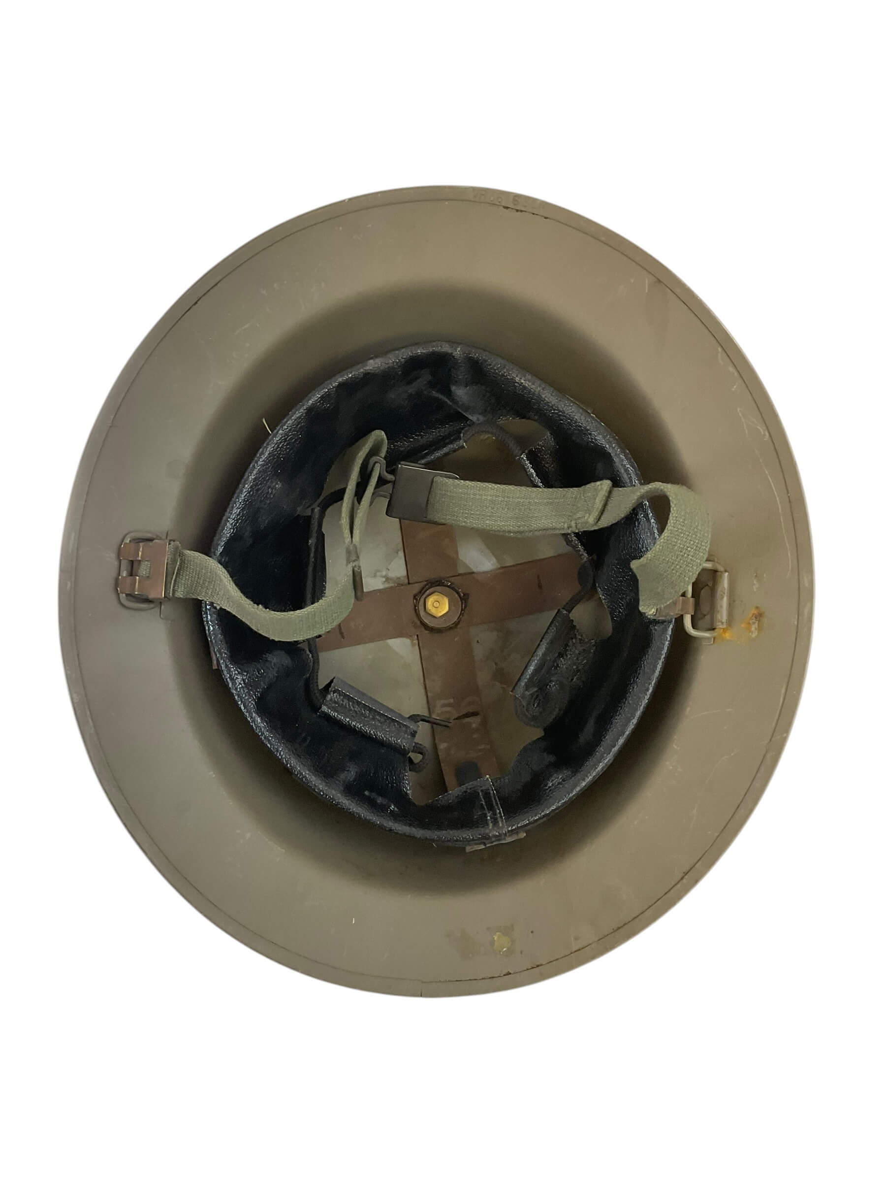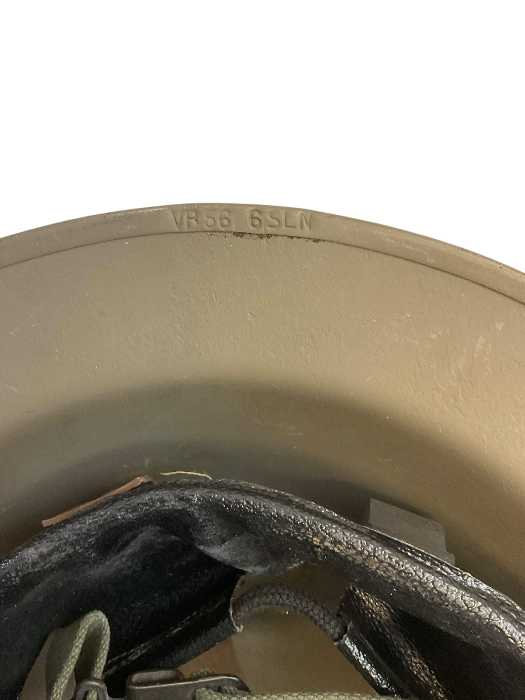 This Belgian Belgium Army Mk2 Steel Helmet with Liner Size 56 is a genuine military artifact, steeped in historical significance. Crafted from robust steel, this Mk2 helmet offers a glimpse into military life, providing both protection and comfort to soldiers. The liner, size 56, ensures the helmet fits snugly and securely, adding an extra layer of safety and enhancing the overall comfort for the wearer. Its design reflects the practicality and robustness required in the field, while its well-preserved condition offers collectors an authentic piece of Belgian military history. This is an ideal acquisition for military enthusiasts, history buffs, or anyone with a keen interest in unique collectibles. Whether for display or for further collection, this Belgian Belgium Army Mk2 Steel Helmet is a valuable relic that stands as a testament to the brave soldiers who once wore it.