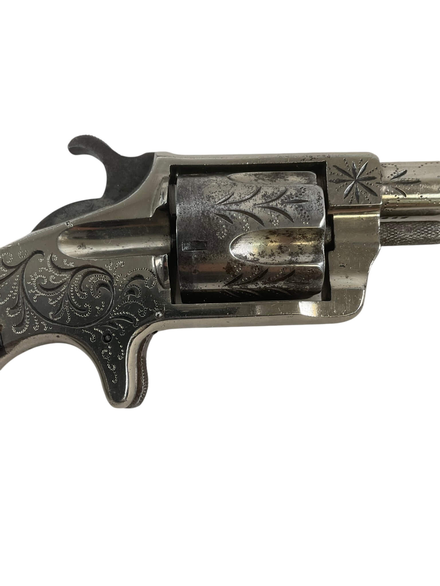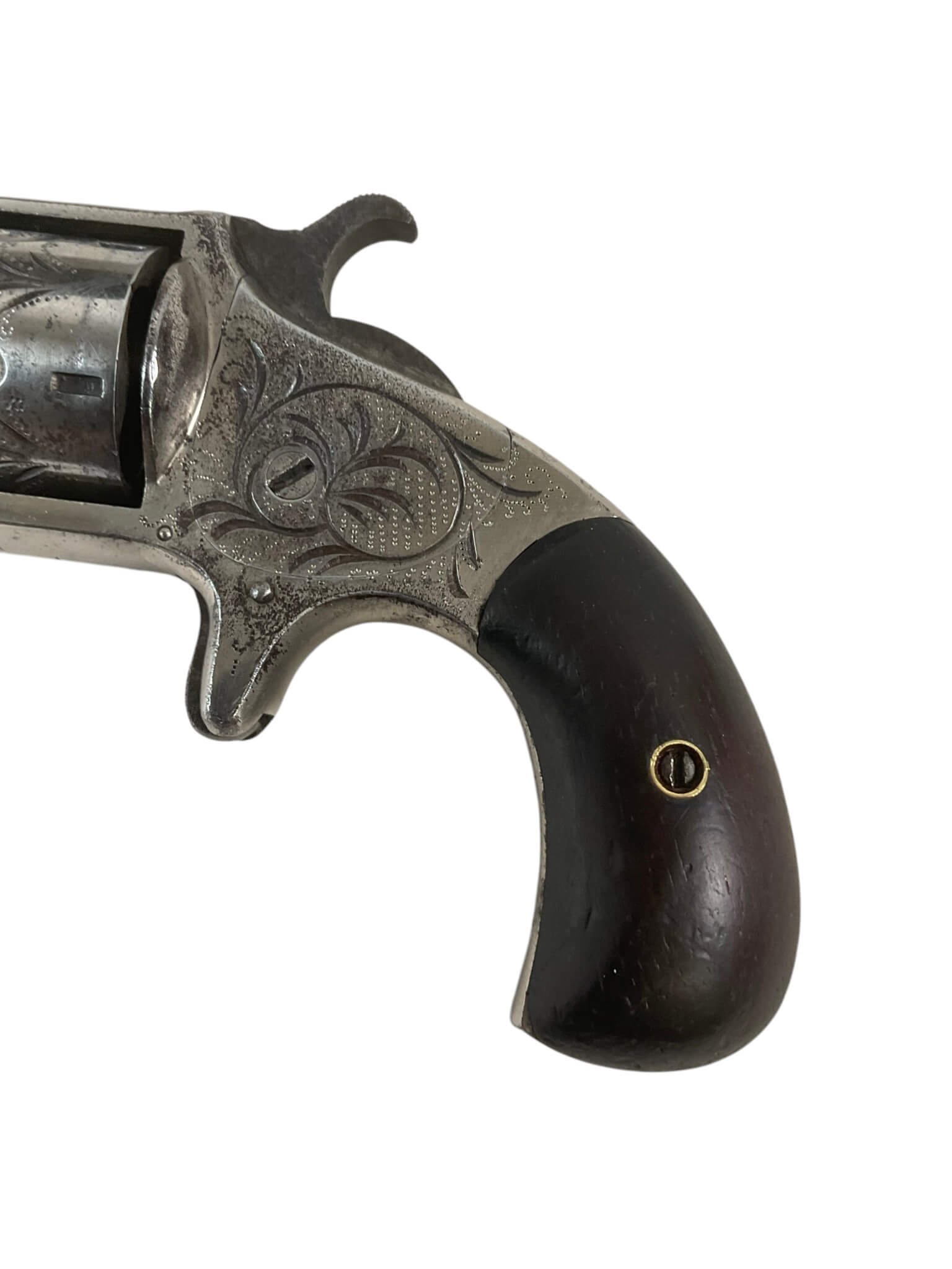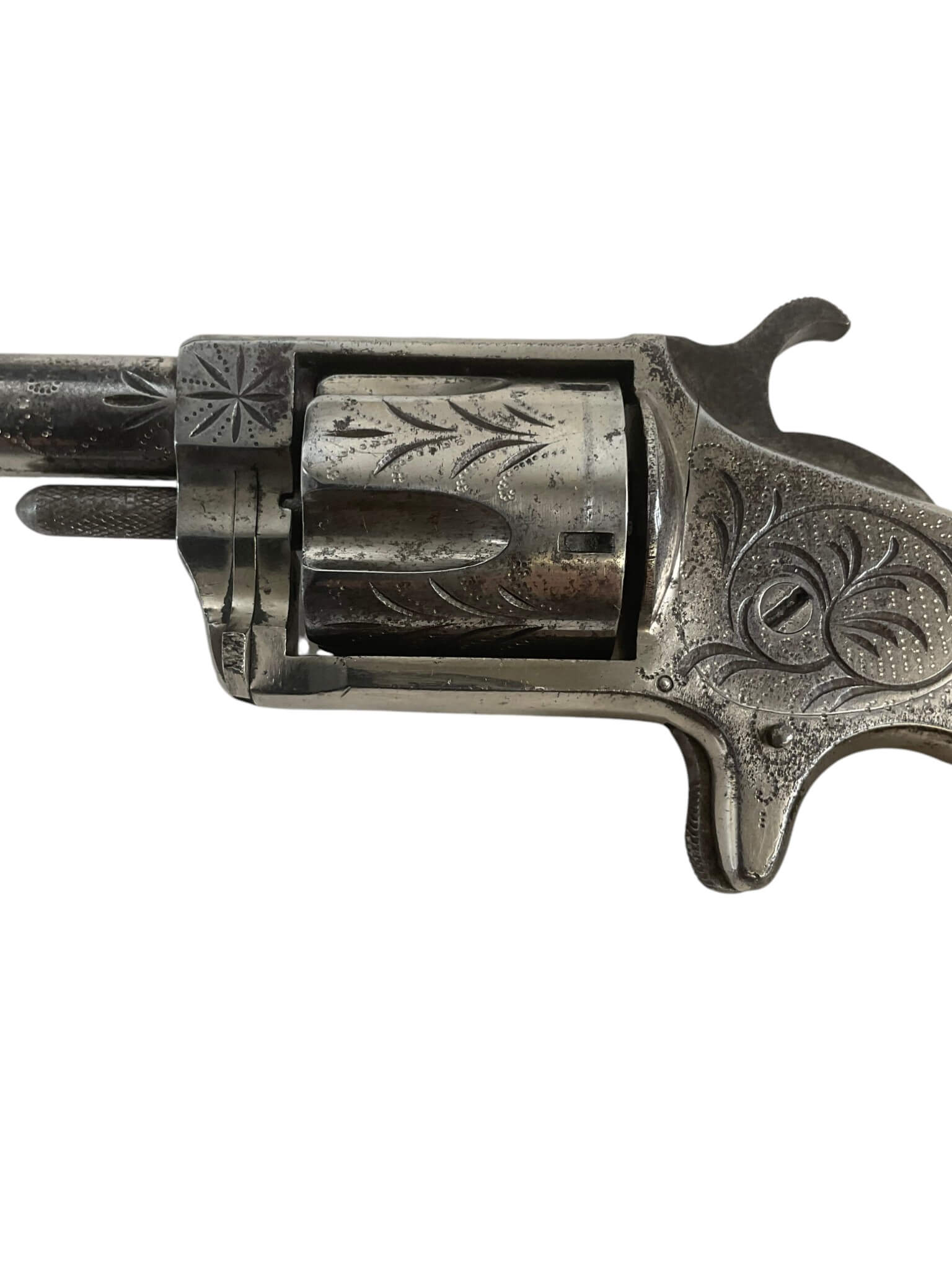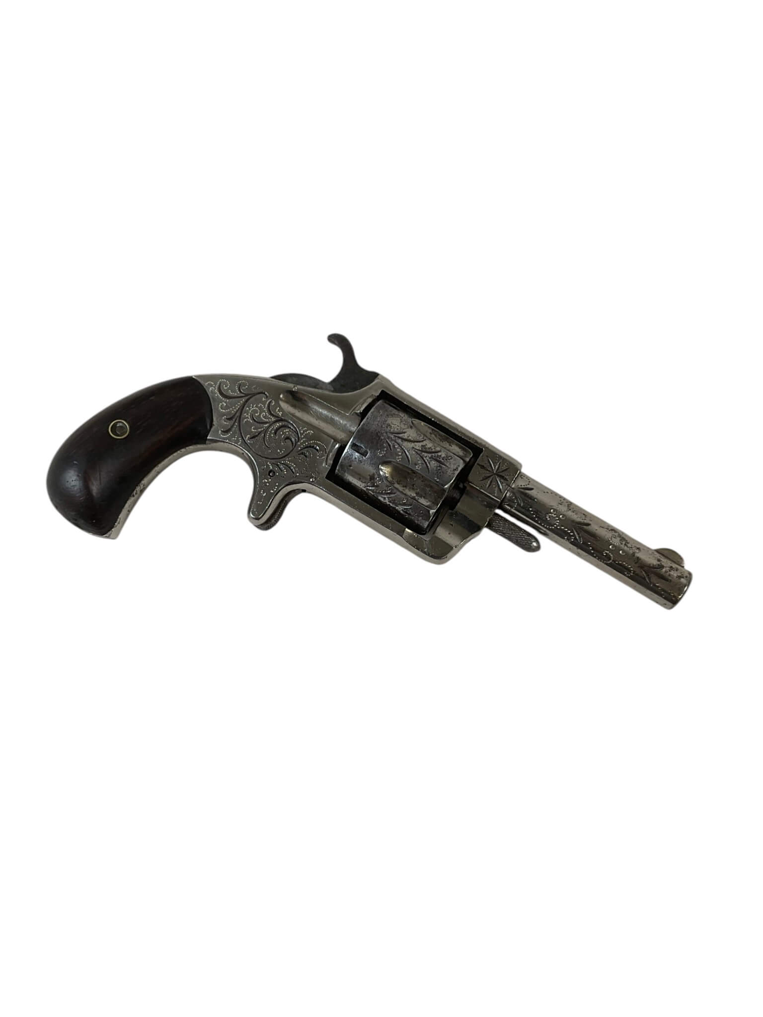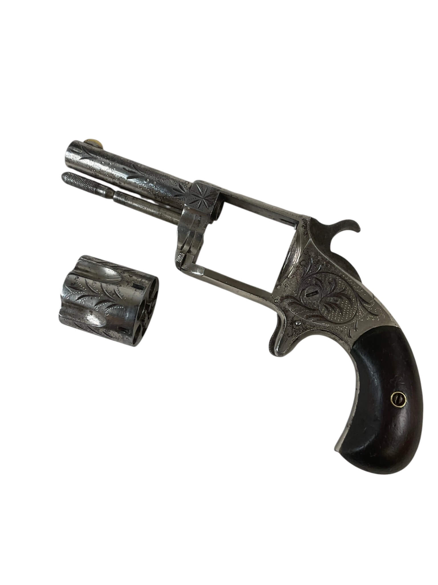 The Blue Jacket No 2 revolver is a .32 rimfire, 5-shot pocket revolver manufactured by Hopkins and Allen in the United States. This example is dated 1871, situating it firmly in the late 19th century. It features a single-action mechanism, spur trigger, and a blued finish typical of period handguns. The compact design and small caliber made it suitable for personal defense during its era of production. The “No 2” designation refers to the .32 rimfire chambering, distinguishing it from other Blue Jacket models. Hopkins and Allen, known for producing a wide range of affordable firearms in the 19th century, distributed these revolvers widely. This revolver qualifies as an antique under current regulations, requiring no permit for ownership in many jurisdictions. Its age, design, and place in American firearms history make it a representative specimen of post-Civil War concealed carry arms.