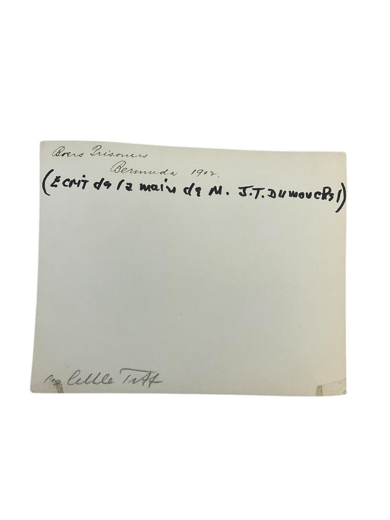 This photo offers a poignant glimpse into the past, capturing a powerful image from the Boer War (1899-1902). It features Dutch prisoners of war (POWs) held captive in Bermuda, a remote British colony used as a detention site. The image portrays a group of Boer soldiers, their faces reflecting a mix of resilience, defiance, and despair. Their uniforms and the camp’s stark surroundings offer a stark reminder of the harsh realities of war. The photo, a significant historical artifact, provides insight into the Dutch experience during the Boer War, underlining the human cost of one of the most contentious conflicts of the late 19th and early 20th centuries. It serves as a testament to the endurance of the human spirit in dire circumstances, making it an invaluable resource for historians and enthusiasts alike.
