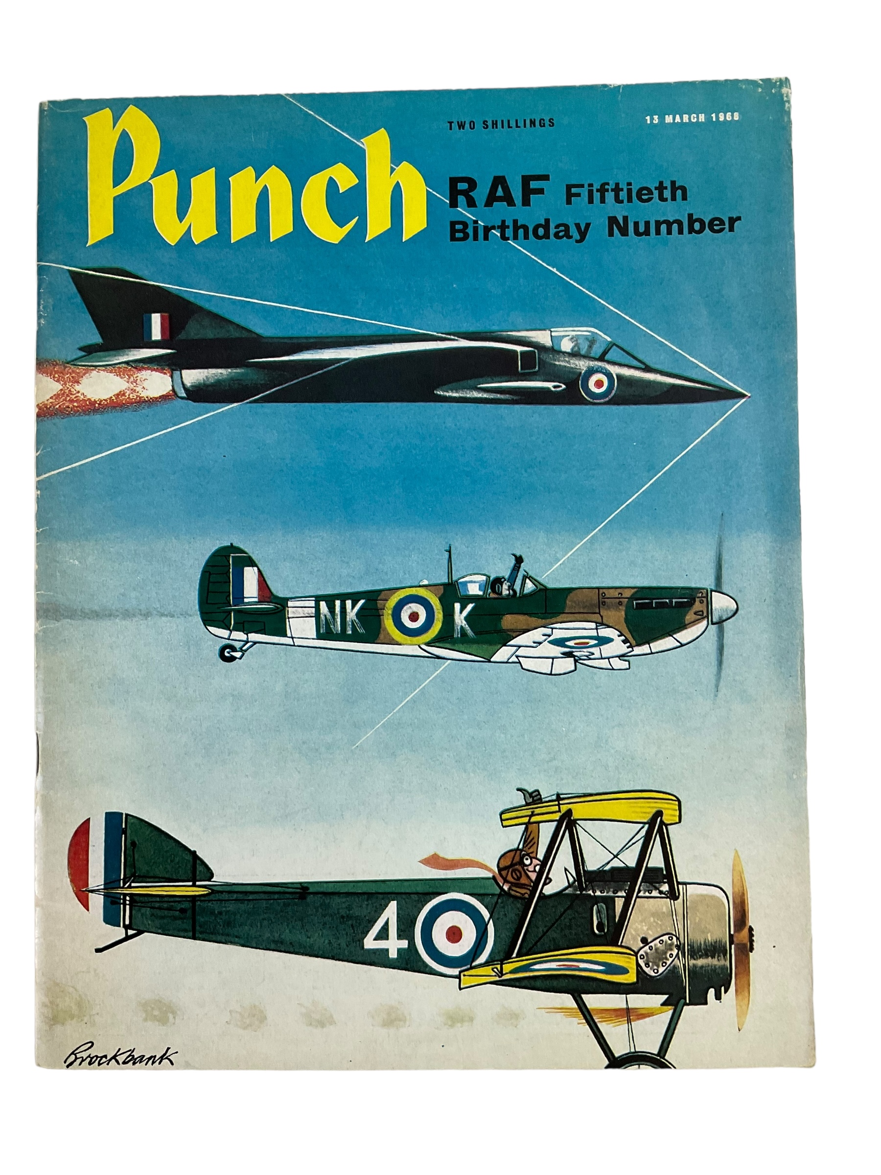 This is a soft cover used condition Punch RAF Fiftieth Birthday Number Reference Book with a total of 64 pages with Humor and many cartoons documenting the Royal Air Force. This edition was published in 1968.