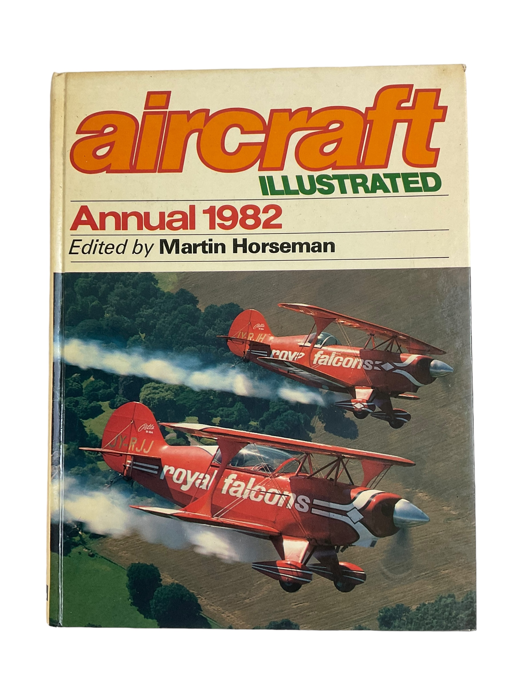 A hard cover used condition Aircraft Annual 1982 Reference Book. Contains a total of 69 pages featuring aircraft news and innovations for the year and historical articles. Many photos and information.
