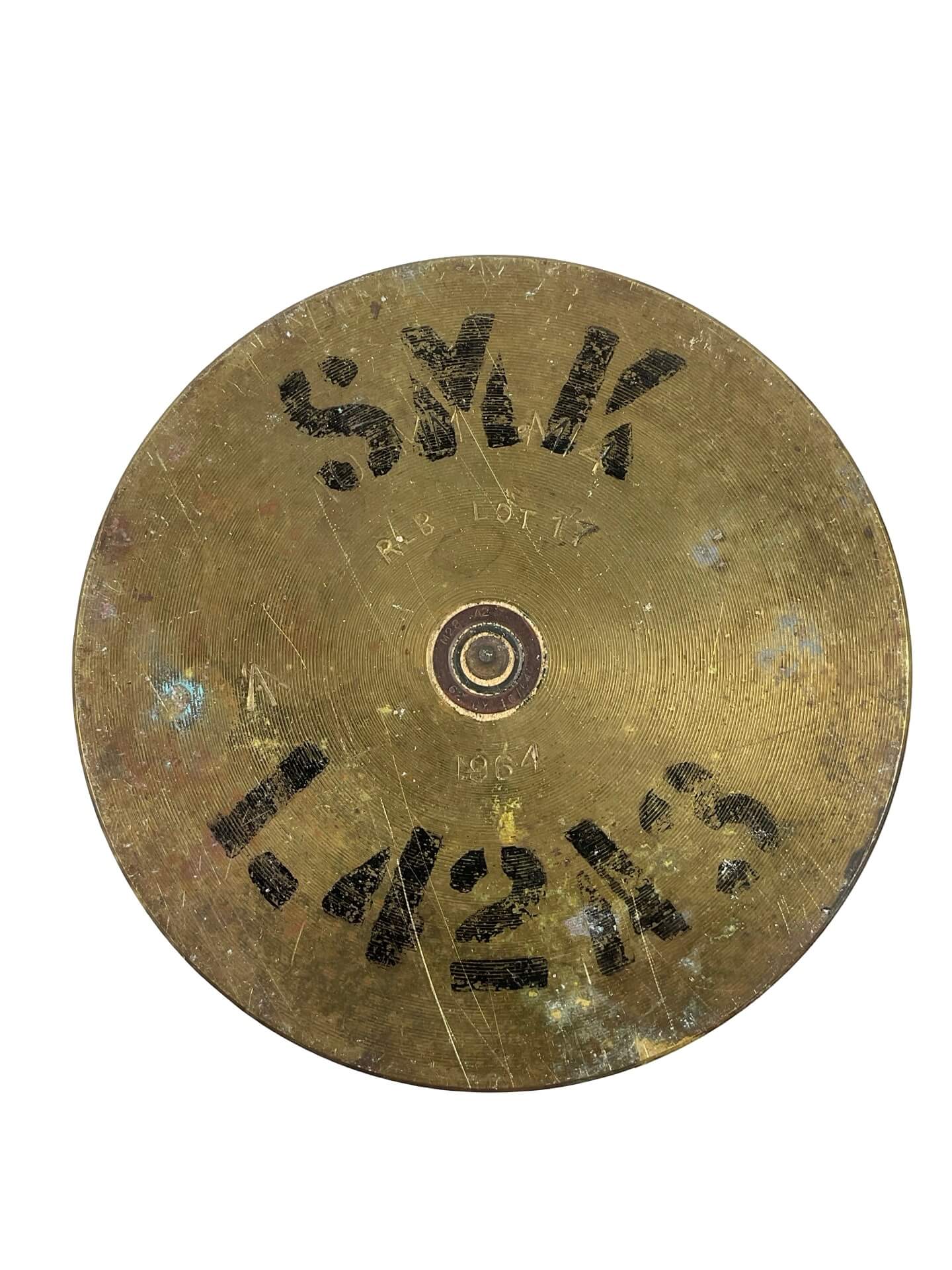 The British 105mm Howitzer Smoke Round Casing (INERT) is an authentic, deactivated shell casing originally used with 105mm field howitzers. This casing was designed to house smoke rounds, which provided concealment or marked targets on the battlefield. The casing is made of brass and displays distinctive markings and manufacturing stamps typical of British military ordnance. As an inert item, it contains no explosive components, having been safely emptied and rendered non-functional according to appropriate safety standards. The piece reflects mid to late 20th-century British artillery equipment and exhibits design features standardized for NATO-compatible artillery systems. Such casings were widely utilized in training and combat scenarios to increase tactical versatility for artillery units. This artifact measures approximately the original length and diameter, offering an accurate representation of British artillery technology of its period. It serves as a tangible example of the materials employed in historic military operations and ordnance manufacturing.