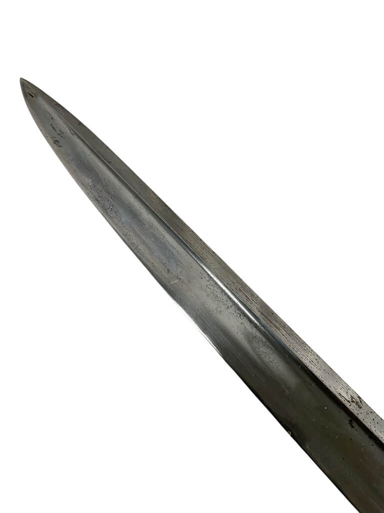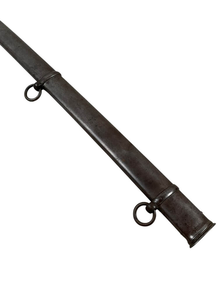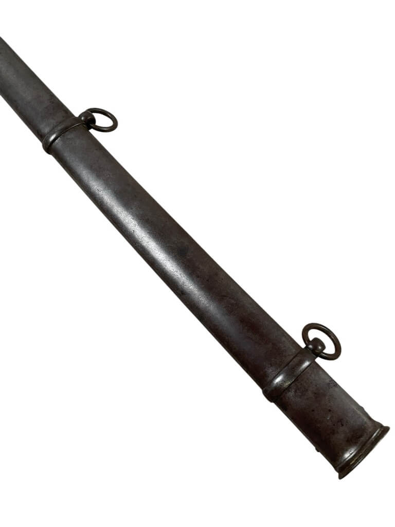The British 1821 Light Cavalry Sword with Scabbard is a historical military edged weapon introduced for British light cavalry units in the early 19th century. Characterized by its three-bar steel hilt and partially single-faceted, slightly curved blade, the sword exemplifies the period’s requirements for balance between cutting and thrusting capabilities. The blade typically measures approximately 89 centimeters in length and features a single fuller. The accompanying steel scabbard is fitted with two suspension rings, allowing for secure attachment to cavalry harness or belts. This model became standard issue in the British cavalry after 1821 and saw prolonged service, including use during the Crimean War and later 19th-century colonial campaigns. The 1821 pattern is also notable for its adoption and manufacture by Commonwealth countries. This example, offered by a Canadian distributor, retains the key design features associated with the British 1821 Light Cavalry Sword and is often sought after by collectors and historians interested in nineteenth-century military equipment.