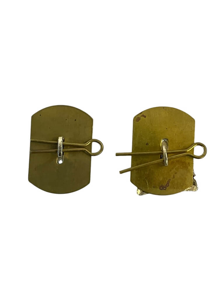 This pair of insignia belongs to the historical British 5th Royal Inniskilling Dragoon Guards. They are made with Staybright metal, a type of metal known for its anti-tarnish properties, ensuring a lasting shine. The insignia showcase intricate details, reflecting the rich history and prestige of the Dragoon Guards. The design features the traditional emblem of the Inniskilling Dragoon Guards, providing a sense of authenticity. These collars insignia are perfect as collector’s items for military enthusiasts or as a special gift for history buffs. Despite their age, they are kept in excellent condition and are a testament to the quality of British military regalia. Their bright shine and historical significance make them a standout piece in any collection.