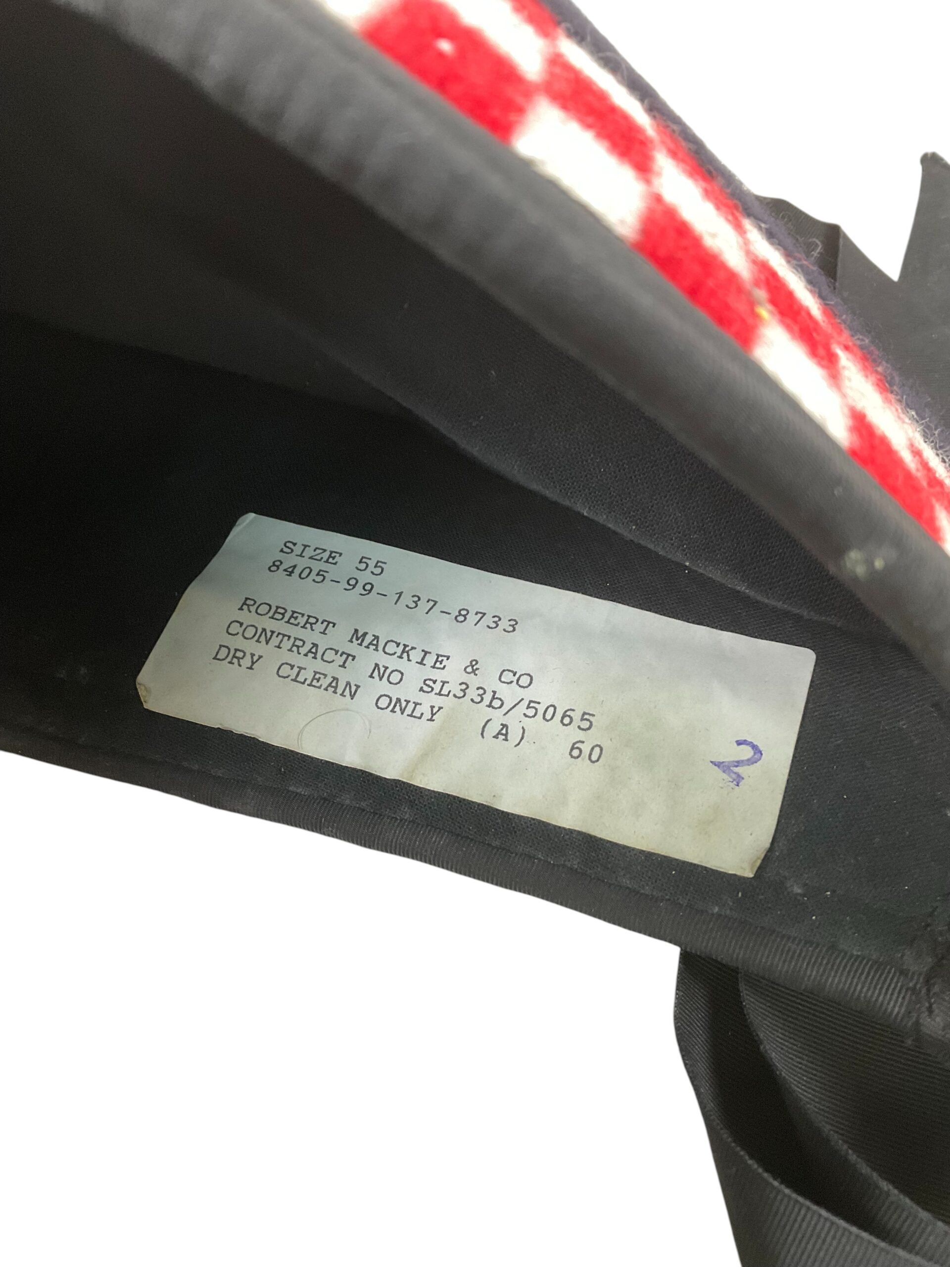The British Army Argyll and Sutherland Highlanders Diced Glengarry is a traditional Scottish military headdress historically worn by members of the Argyll and Sutherland Highlanders regiment. This example, sized 55, features the distinctive diced red, white, and green band around its base, a hallmark of Scottish regimental headgear. The glengarry cap is made from dark blue wool with black silk ribbon tails and is designed to sit neatly on the head, sloping to the right. Often worn as part of both ceremonial and undress uniforms, the diced glengarry is associated with Highland regiments of the British Army and reflects regimental identity and heritage. The size marking, 55, indicates the internal circumference in centimeters, suitable for head sizes of approximately 21.5 inches. This item does not include a cap badge or hackle, which would typically be added according to regimental specifications. The glengarry remains an enduring element of Scottish military dress.