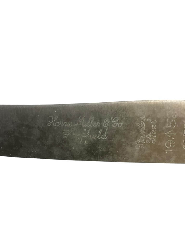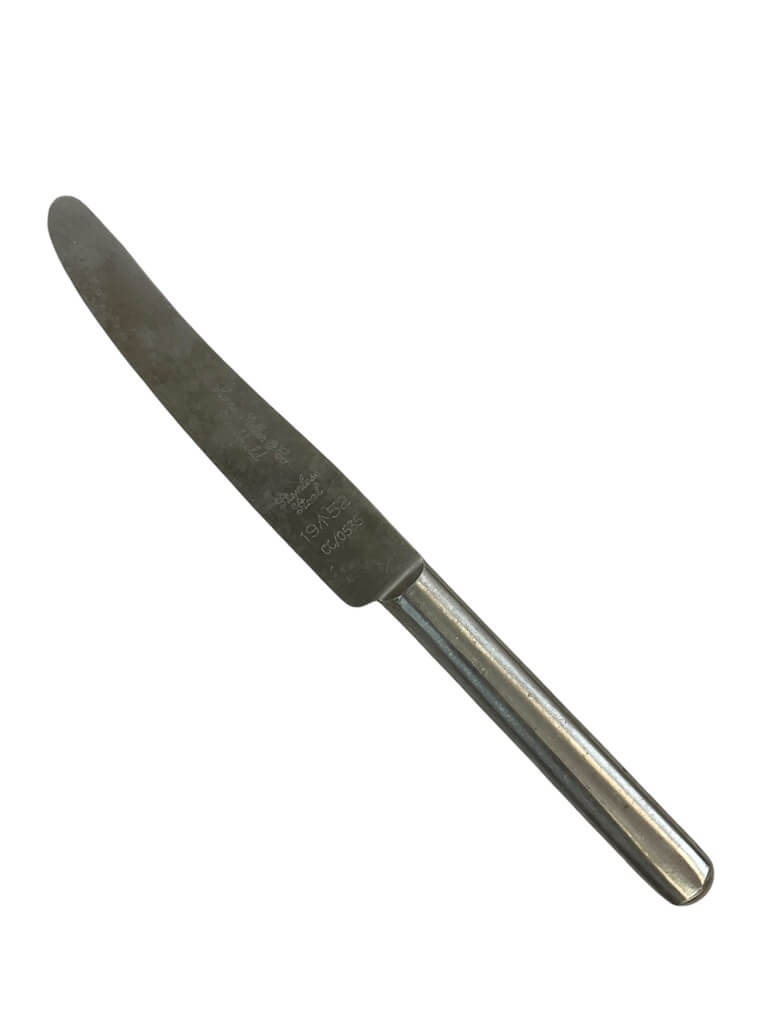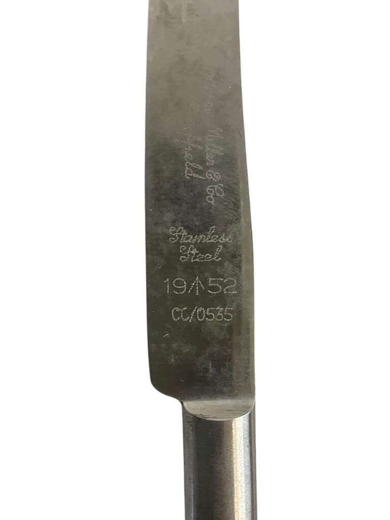 This British Army Broad Arrowed KFS Knife is a genuine, vintage military collectible item, dated back to 1952. The ‘Broad Arrow’ marking on the knife is a historically significant symbol, used by the British Government to denote property of the crown, often seen on military equipment. This knife is part of the KFS (Knife, Fork, Spoon) set, a staple in the kit of every British soldier. Made from durable, high-quality stainless steel, it is designed to withstand the harshest conditions. Its compact and practical design reflects the British Army’s emphasis on functionality and efficiency. This knife not only serves as a useful tool but also as a piece of history, making it a must-have for military enthusiasts and collectors. Despite its age, it is in good condition, bearing witness to its excellent craftsmanship and the robust character of the era it represents.