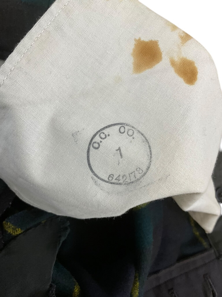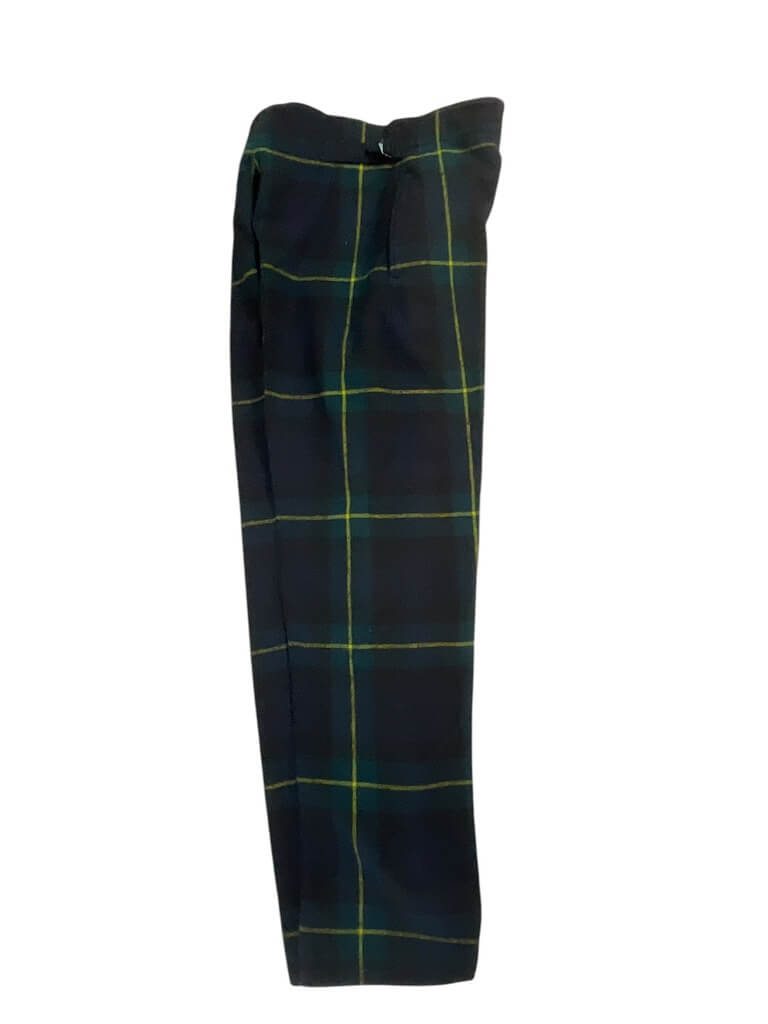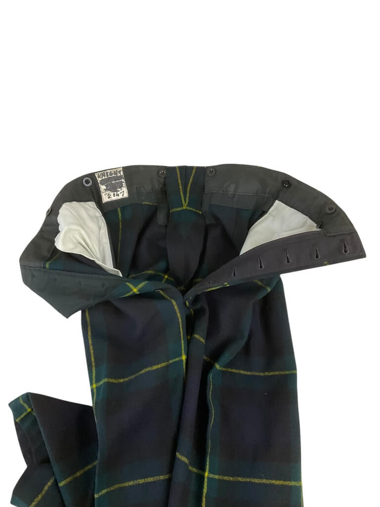 These British Army Gordon Highlanders Trews are a unique piece of military attire with a rich history. Sized with a 30-inch waist, these pants are a perfect replica of the traditional Scottish military uniform. They are meticulously crafted following the original design, featuring a high waist and a straight-cut fit. The fabric is a blend of wool and synthetic materials, ensuring durability and comfort. The trews showcase the iconic Gordon Highlanders tartan, a striking pattern of green, blue, black, and yellow. They come with belt loops, a buttoned fly, and convenient side pockets. Whether you’re a history enthusiast, a reenactor, or simply someone who appreciates classic military aesthetics, these Gordon Highlanders Trews would make a valuable addition to your wardrobe. Please note that due to the vintage nature of these pants, minor variations may be present, adding to their unique character.