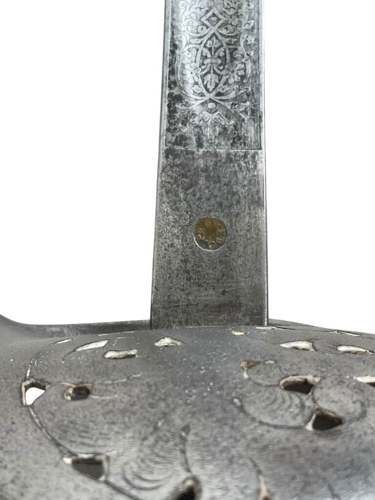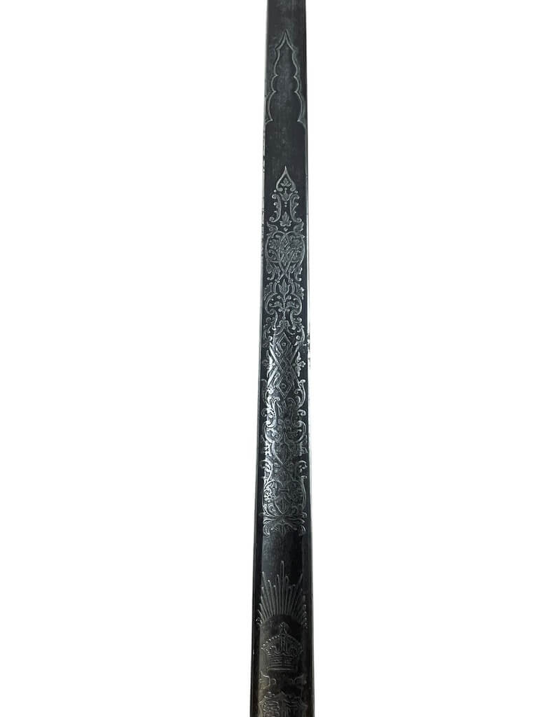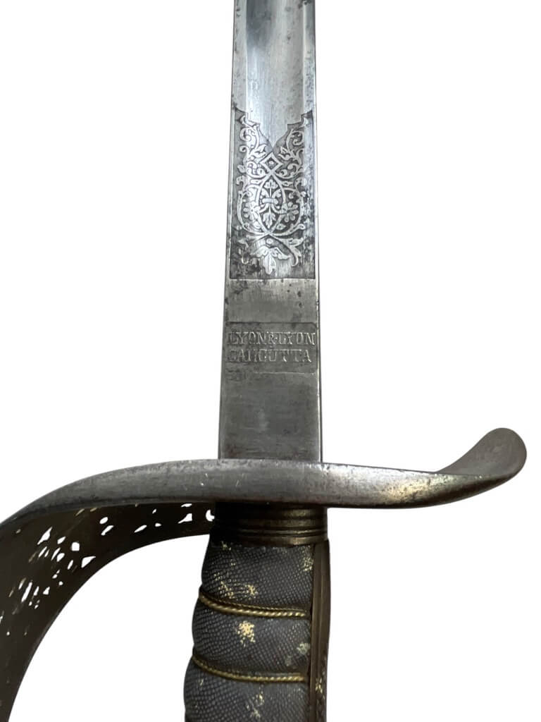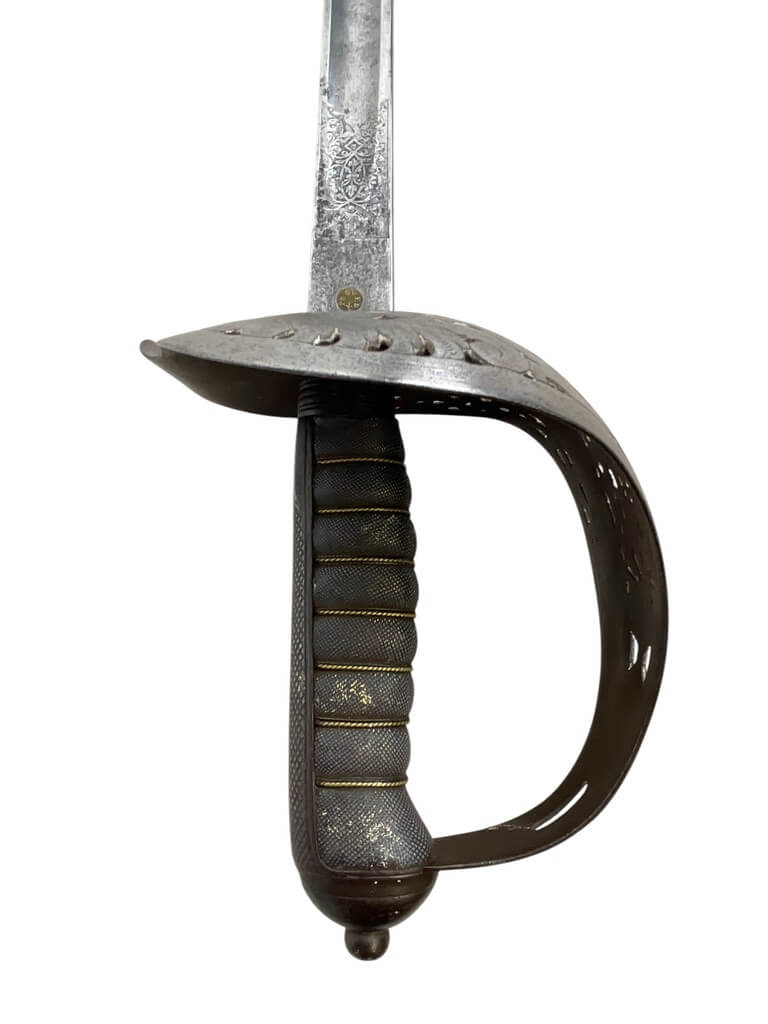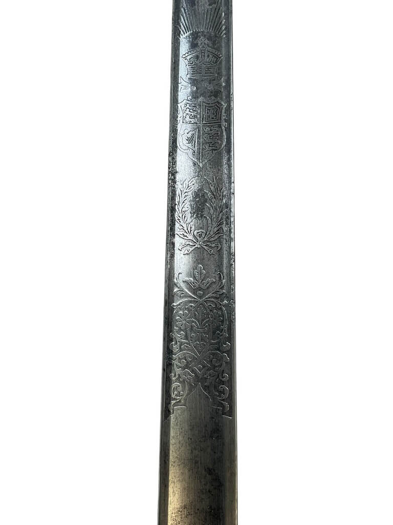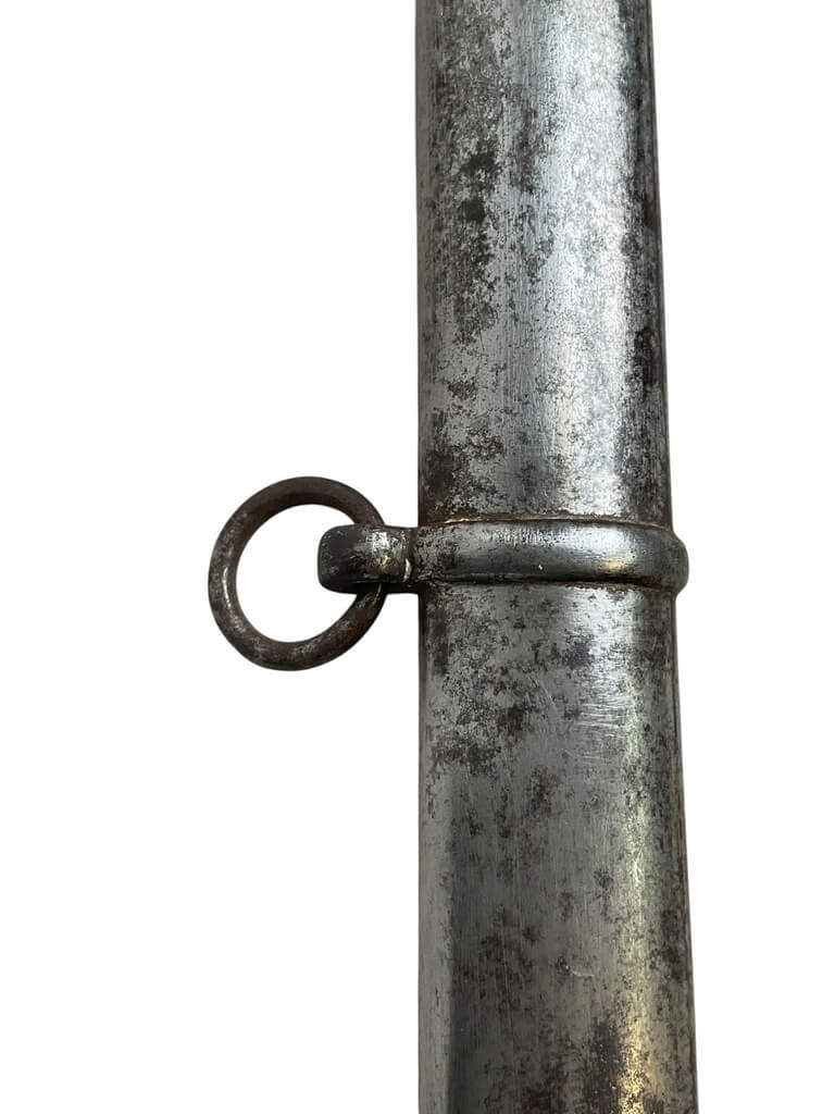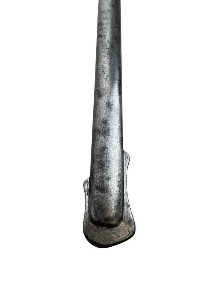 This ‘British Army Officers 1897 Pattern Sword with Scabbard Made in India’ is a remarkable artifact, carrying a rich history within its craftsmanship. The sword, designed according to the specifications of the 1897 pattern, was the standard issue for British Army officers, signifying their rank and authority. The blade is robust yet elegant, reflecting the fine balance between strength and finesse required in an officer. The accompanying scabbard, too, is a work of art, crafted meticulously to house the sword securely. Made in India, this piece is a testament to the cross-cultural influences during the British colonial period. The quality of craftsmanship indicates the high standards maintained in the production of military equipment during this era. This piece is a must-have for collectors with an interest in military history, specifically that of the British Empire. It’s not just a weapon, but a symbol of a bygone era and the rich tapestry of global history.