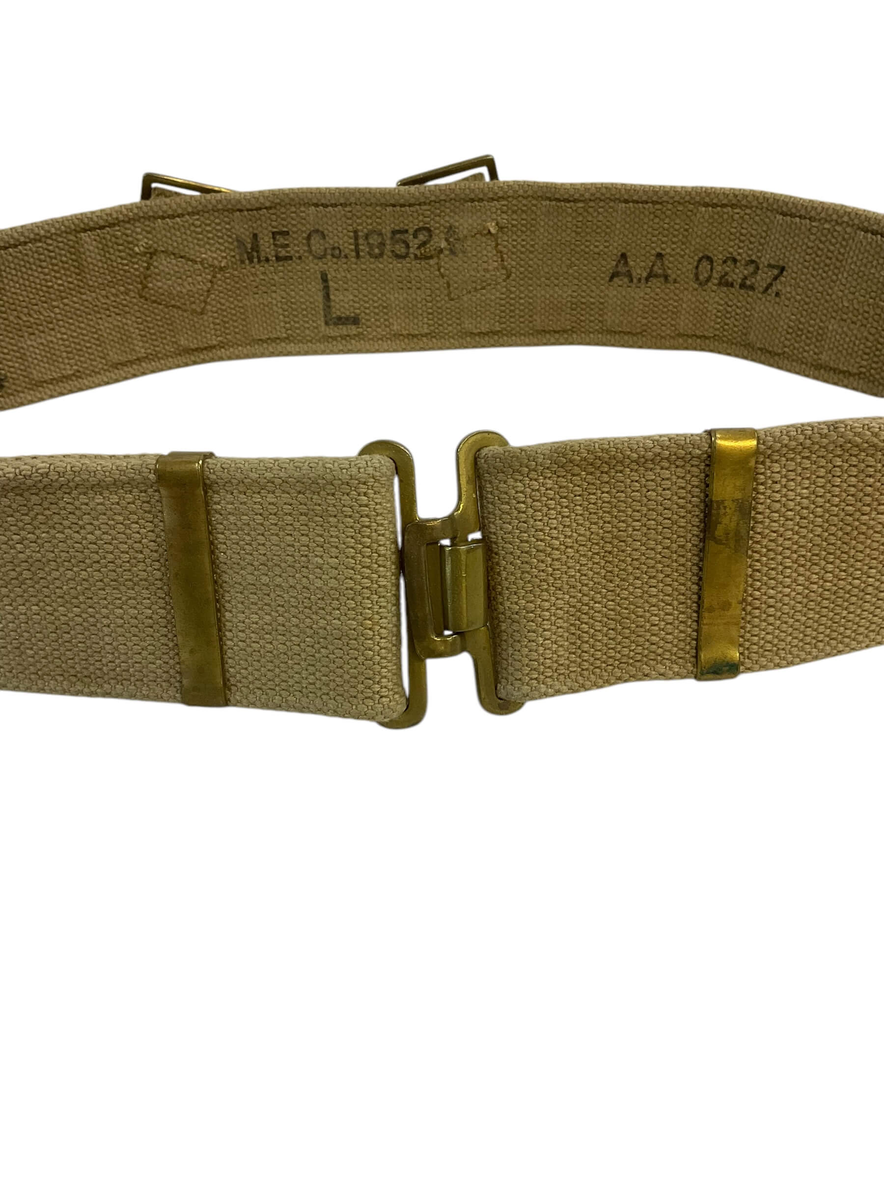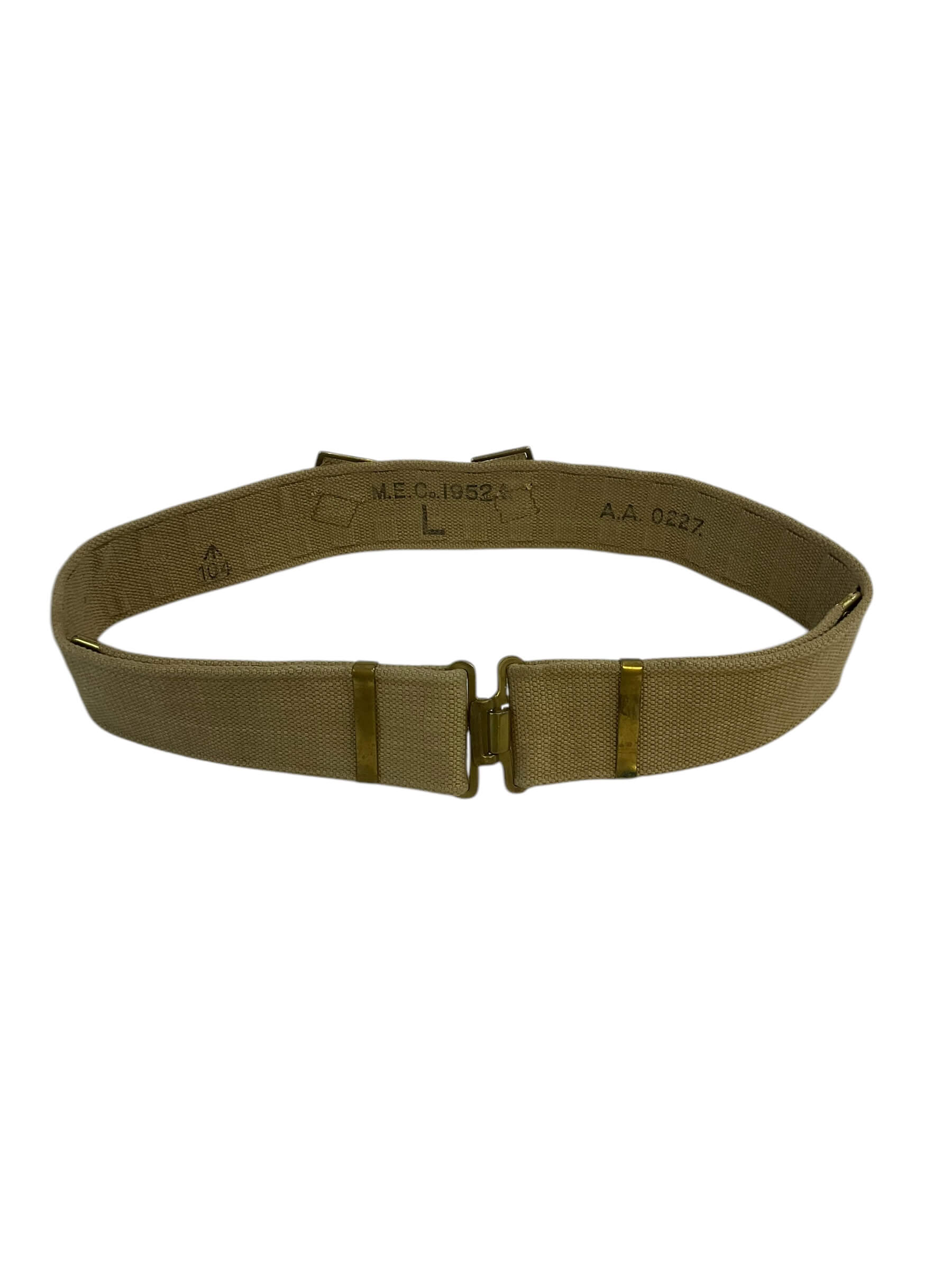 This item is a genuine British Army P37 Web Belt, Size Large, dated from 1952. This classic military accessory is steeped in history and authenticity, hailing from the era of post-WWII Britain. The P37 belt is constructed from rugged webbing material, designed to withstand the rigors of military life. Its large size ensures a comfortable fit for most adults. The belt features a sturdy, traditional buckle for secure fastening, and its olive green shade adds to its vintage military appeal. The 1952 date stamp confirms its historical significance, making it not just a functional piece, but also a collector’s item. This belt is ideal for historical reenactments, military enthusiasts, or those who appreciate vintage fashion or military memorabilia.