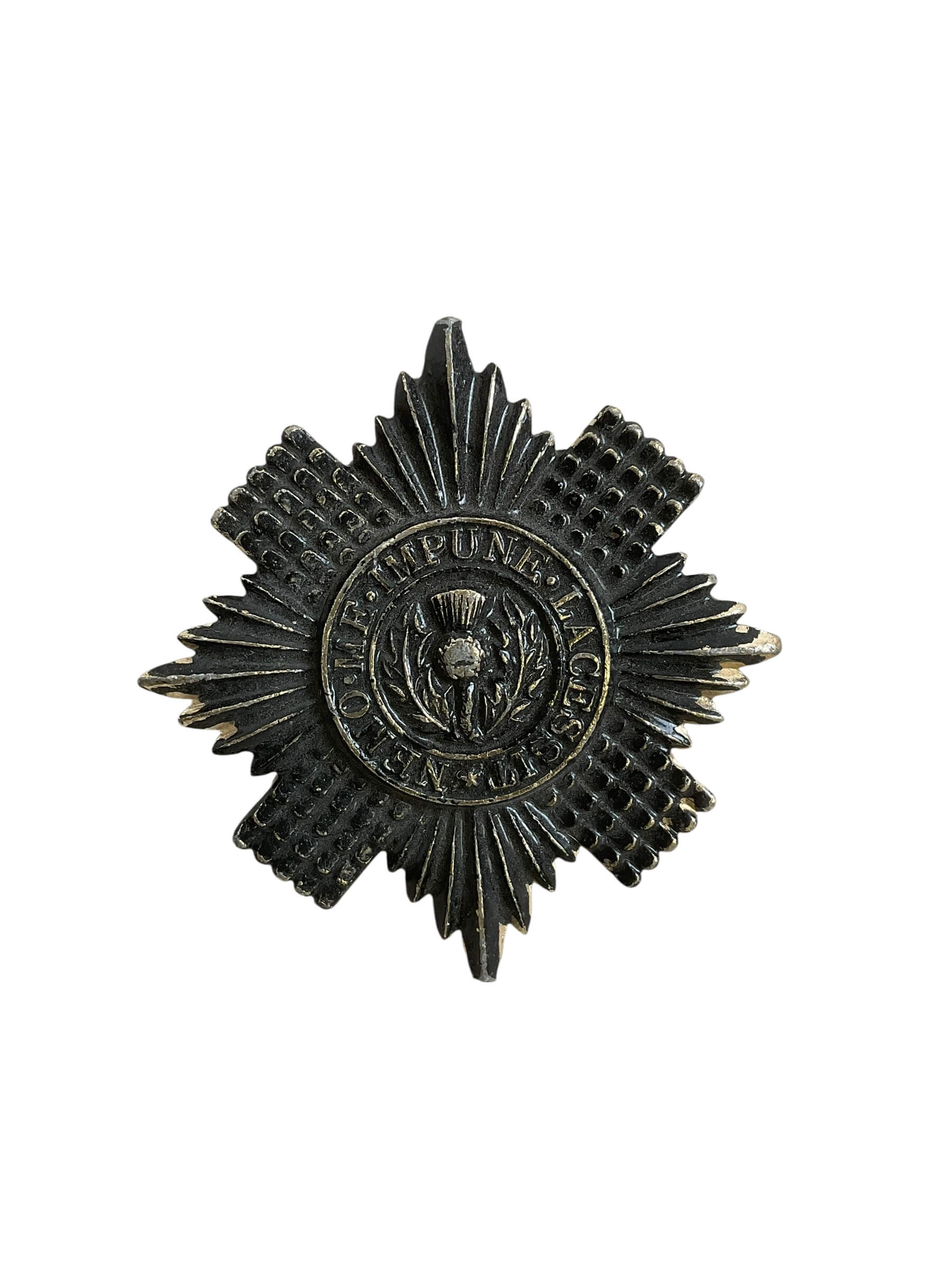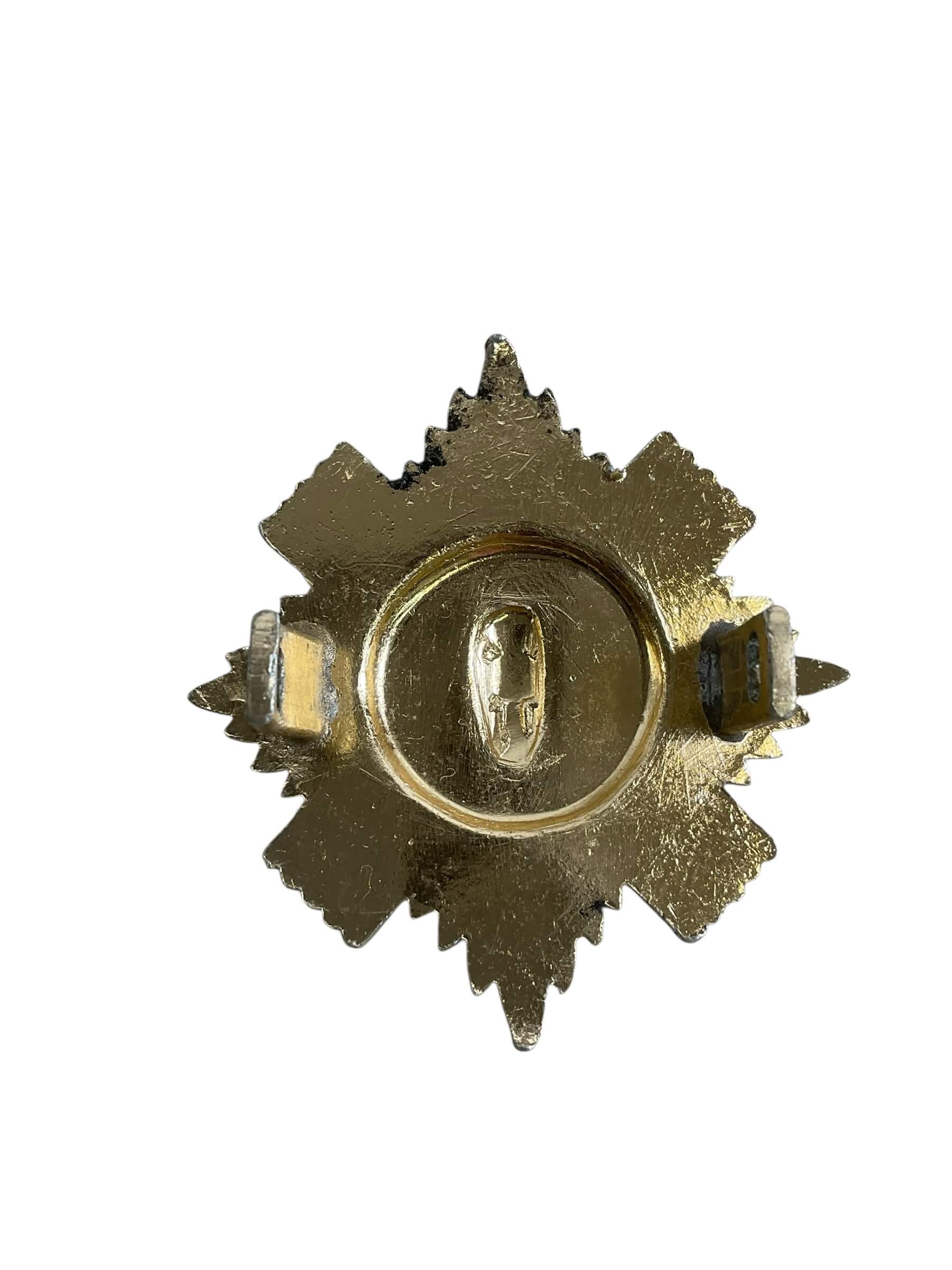 The British Army Scots Guards Staybright Cap Badge is a distinctive emblem that has been historically associated with the British Army and notably the Scots Guards. This elegant badge, typically crafted from anodized aluminum, is renowned for its longevity and enduring sheen. It features a vibrant display of the Star of the Order of the Thistle, the highest chivalric order in Scotland, encircled by a belt inscribed with the Scots Guards’ motto, “Nemo Me Impune Lacessit,” Latin for “No one provokes me with impunity.” The cap badge is a symbol of valor and pride, serving as a testament to the wearer’s allegiance and commitment to their regiment. Each badge is designed with great attention to detail, ensuring an accurate representation of the Scots Guards’ illustrious history. Collectors and military enthusiasts alike treasure this badge for its historical significance and timeless allure.