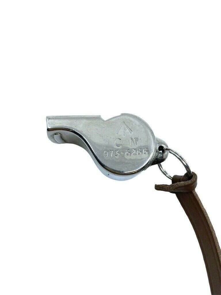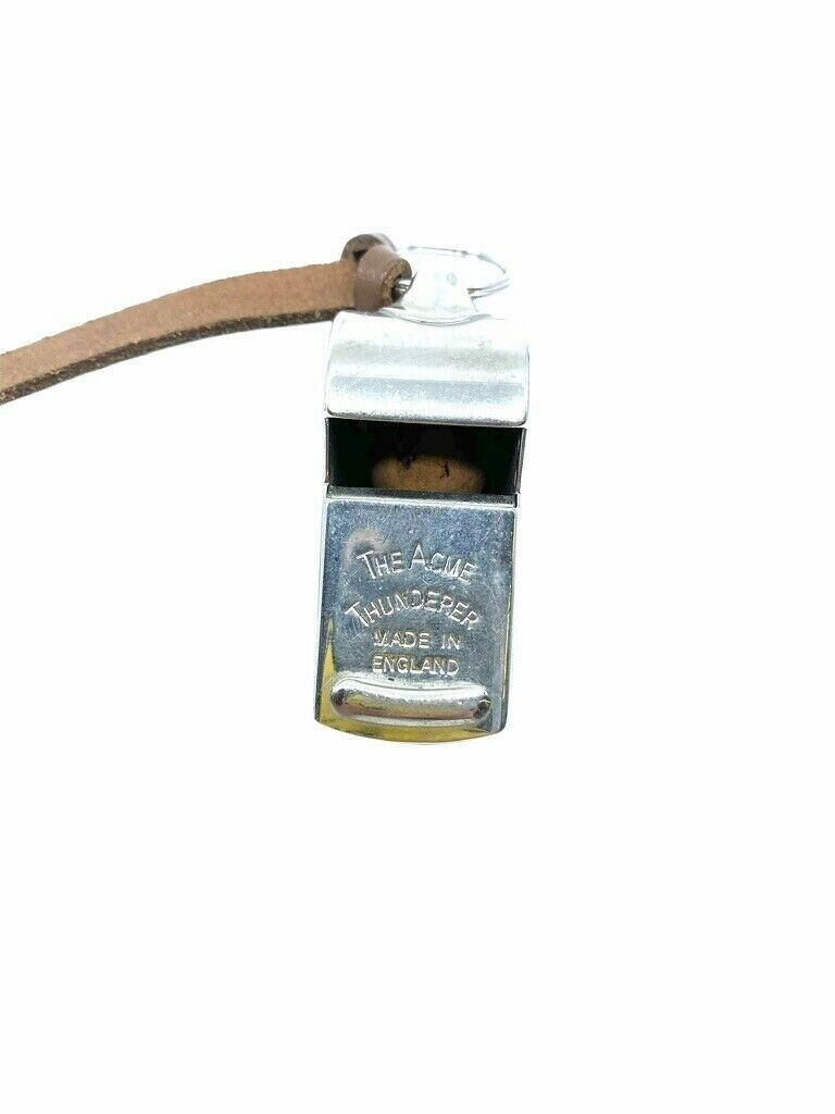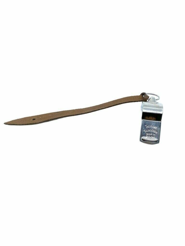 British Army Whistle Broad Arrowed ACME Thunderer. I believe because of the numbers on the side that this is postwar issue. Complete with leather strap