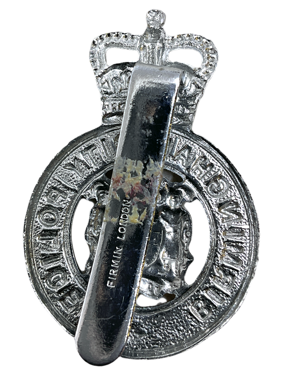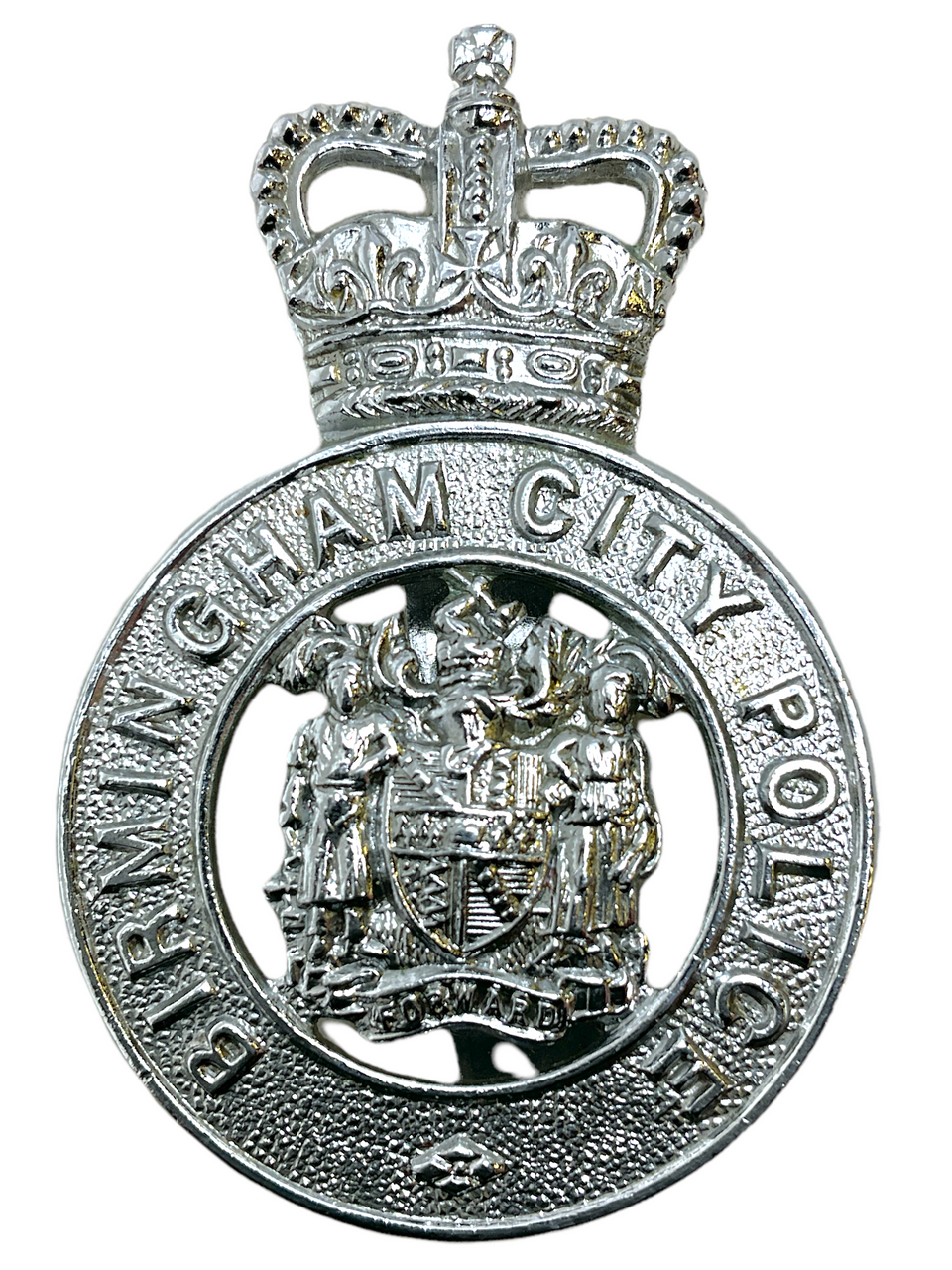 The British Birmingham City Police Constabulary Helmet Badge is a historically significant emblem that exemplifies the heritage and pride of the Birmingham City Police, which served the city from its formation in 1839 until its amalgamation into the West Midlands Police in 1974. This meticulously crafted badge typically features a prominent crown, symbolizing the authority of the monarchy, and the distinctive coat of arms of Birmingham, showcasing key elements of the city’s rich industrial and cultural history. Encircled by a laurel wreath, the badge signifies honor and achievement, reflecting the dedication and service of the officers who wore it. Collectors and history enthusiasts value this badge for its intricate design and the connection it provides to the storied past of British law enforcement. The Birmingham City Police Constabulary Helmet Badge stands as a tribute to the legacy and commitment of those who have protected and served the community throughout the years.