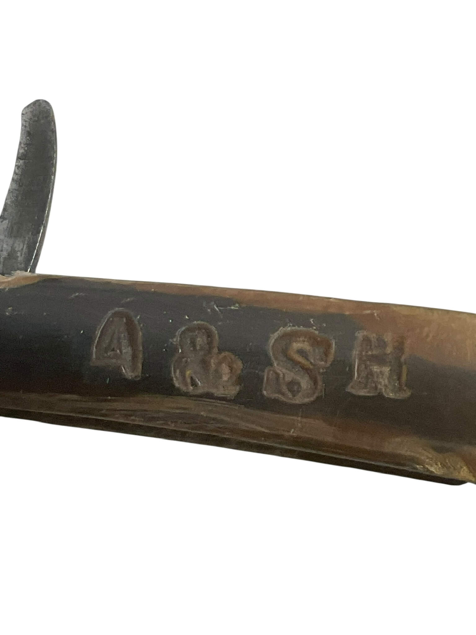 The British Boer War Argyll and Sutherland Highlanders Numbered Straight Razor is a historical grooming tool associated with the Argyll and Sutherland Highlanders regiment during the period of the Second Boer War (1899–1902). This straight razor features a steel blade housed in a handle constructed from durable materials typical of turn-of-the-century military-issued personal items. Distinctive to this razor is its stamped regimental number, which denotes its allocation to a specific individual within the Highlanders unit. Such razors were standard issue or privately acquired by soldiers to maintain personal hygiene in field conditions. The presence of the regimental marking provides evidence of military provenance, contributing to its historical significance. These razors offer insight into the daily lives and routines of British soldiers serving in South Africa during the conflict. Well-preserved examples are valued for their connection to military history and the specific lineage of the Argyll and Sutherland Highlanders during the era of British colonial warfare.