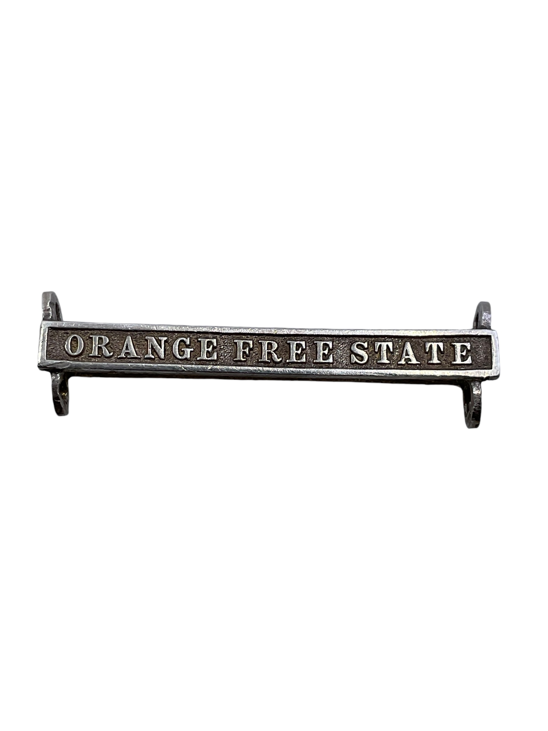 This item is a rare, full-sized British Boer War Orange Free State Medal Bar. It is a prestigious military award that was bestowed upon British soldiers who served valiantly during the Boer War, a conflict that occurred from 1899 to 1902 in South Africa. The medal bar features intricately detailed engraving, symbolizing the bravery and dedication of the soldiers in the face of adversity. The Orange Free State aspect of the medal denotes service in a particular region of South Africa, reflecting the recipient’s specific contributions. This medal bar not only commemorates a significant period in British military history but also represents a unique collectible item. Its historical significance and detailed craftsmanship make it a valuable addition to any military memorabilia collection.