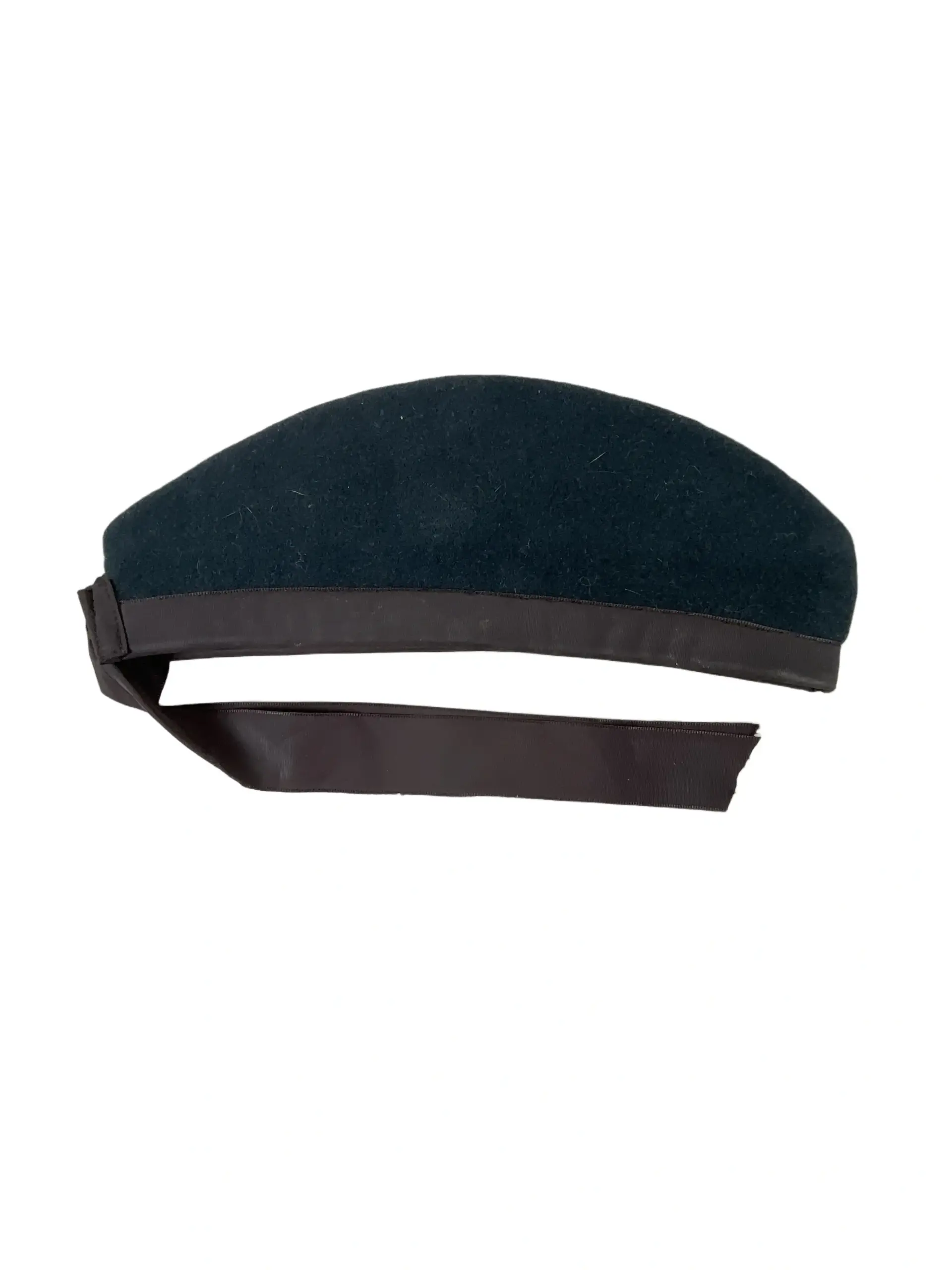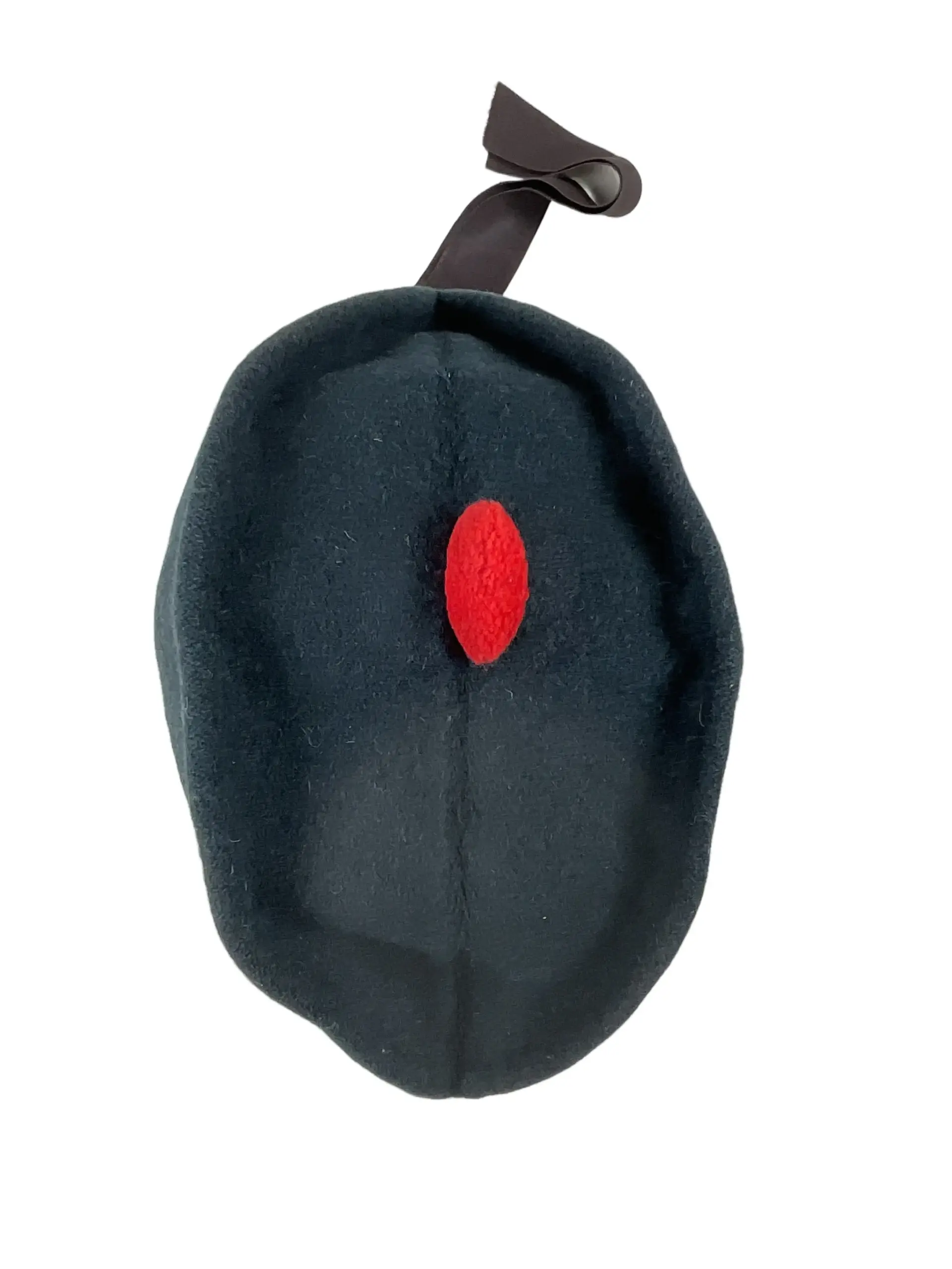 The British Cameronians Scottish Rifles Green Glengarry is a traditional military headdress associated with the Cameronians (Scottish Rifles), a distinguished infantry regiment of the British Army. This glengarry features a dark green wool body, consistent with regimental color distinctions, and is typically adorned with a black silk ribbon trailing from the back. The headdress includes a dicing band—often a black and red checkered pattern—and eyelets for attaching a regimental cap badge and hackle, though these items may not be present. The interior is generally lined for comfort and bears the appropriate manufacturer’s mark or government stamp. Worn as part of the regiment’s dress uniform from the late 19th to the mid-20th century, the green glengarry served as both a practical and ceremonial headpiece. It remains a recognizable element of Scottish military dress, reflecting the history and traditions of the Cameronians regiment within the context of British military heritage.