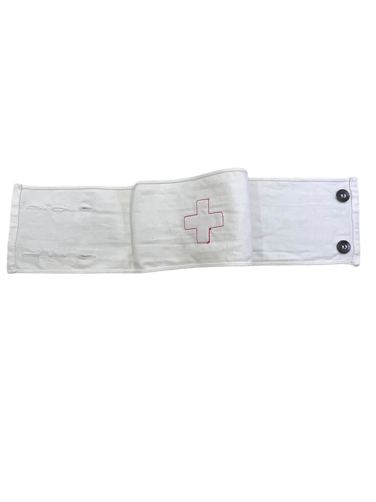 The ‘British Canadian Army Medic Armband Brassard’ is a significant piece of military memorabilia, steeped in rich history and heritage. This armband, often worn by medical personnel in the British and Canadian armies, signifies an essential role in battlefield scenarios. Made from durable fabric, it is designed to withstand harsh conditions while maintaining visibility. The brassard features the universally recognized red cross symbol, denoting medical personnel, and is typically worn on the left arm. The sturdy construction and button fastenings ensure a secure fit even during intense engagements. This armband not only serves a practical purpose but also stands as a testament to the bravery and dedication of military medics. Whether for a collector, history enthusiast, or military personnel, the ‘British Canadian Army Medic Armband Brassard’ is an item of substantial historical and symbolic significance.