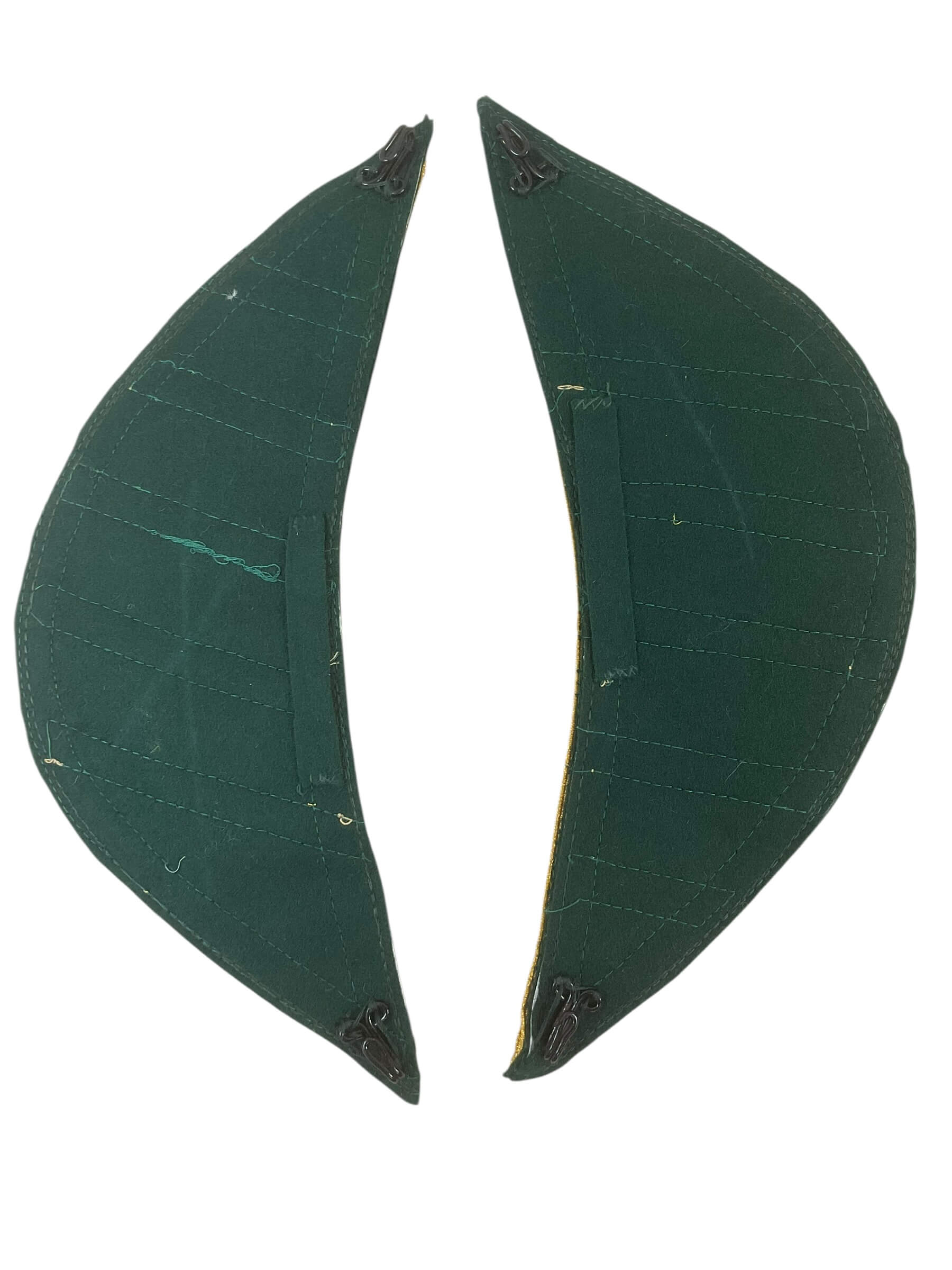 The British Canadian Green/Gold Pattern Band Wings are a form of military insignia, associated with band members of British and Canadian armed forces. This badge features a set of wings rendered in green and gold thread, typically embroidered onto a backing material to be worn on the uniform. The design incorporates stylized wings with a central motif, signifying the wearer’s role in a military band rather than combat or flight duties. Such insignia were commonly issued during the 20th century and reflect the traditions of both British and Canadian military regiments. Placement on the uniform generally identifies musicians and signals their specialist non-combatant status. Construction typically involves quality stitching suited for prolonged wear and visibility. The Green/Gold color scheme, specific to certain regimental bands, allows for easy identification of the band personnel within larger military units during parades, ceremonies, or official events. This item serves as a representation of military tradition and regimental heritage.