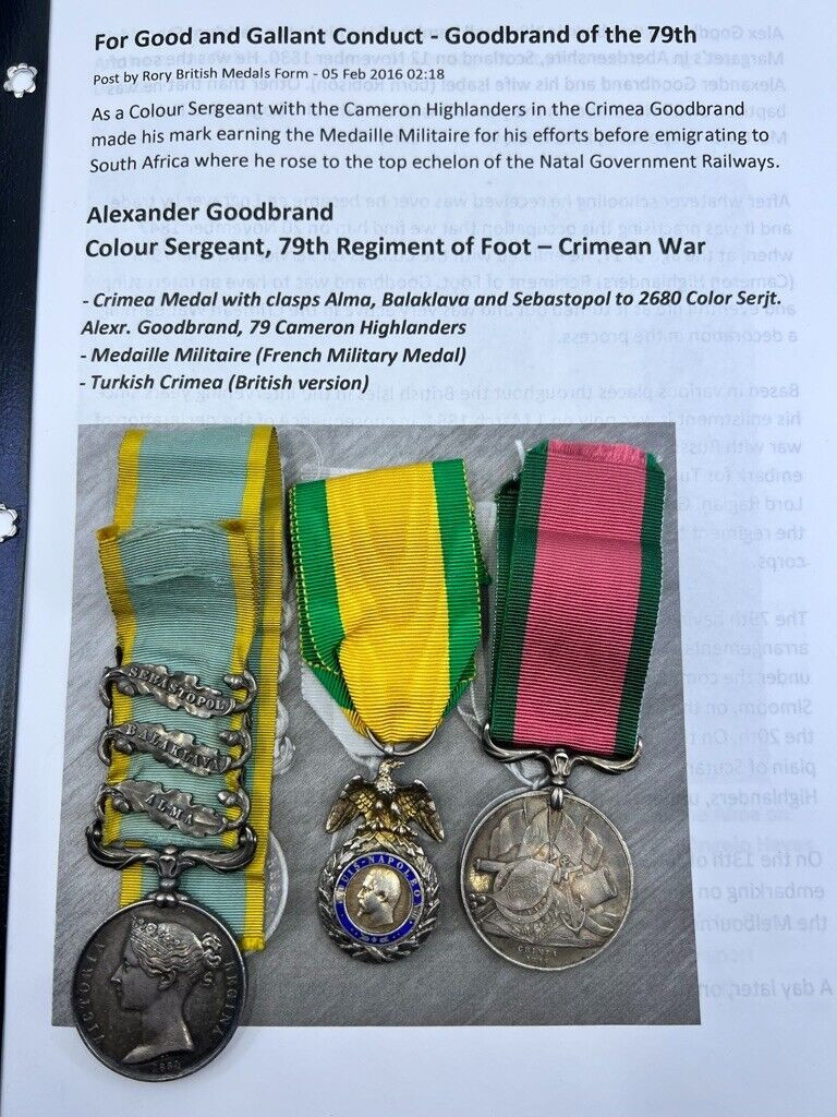 British Crimean War Medal Group French Medal Colour Sgt 79th Cameron Highlanders with research