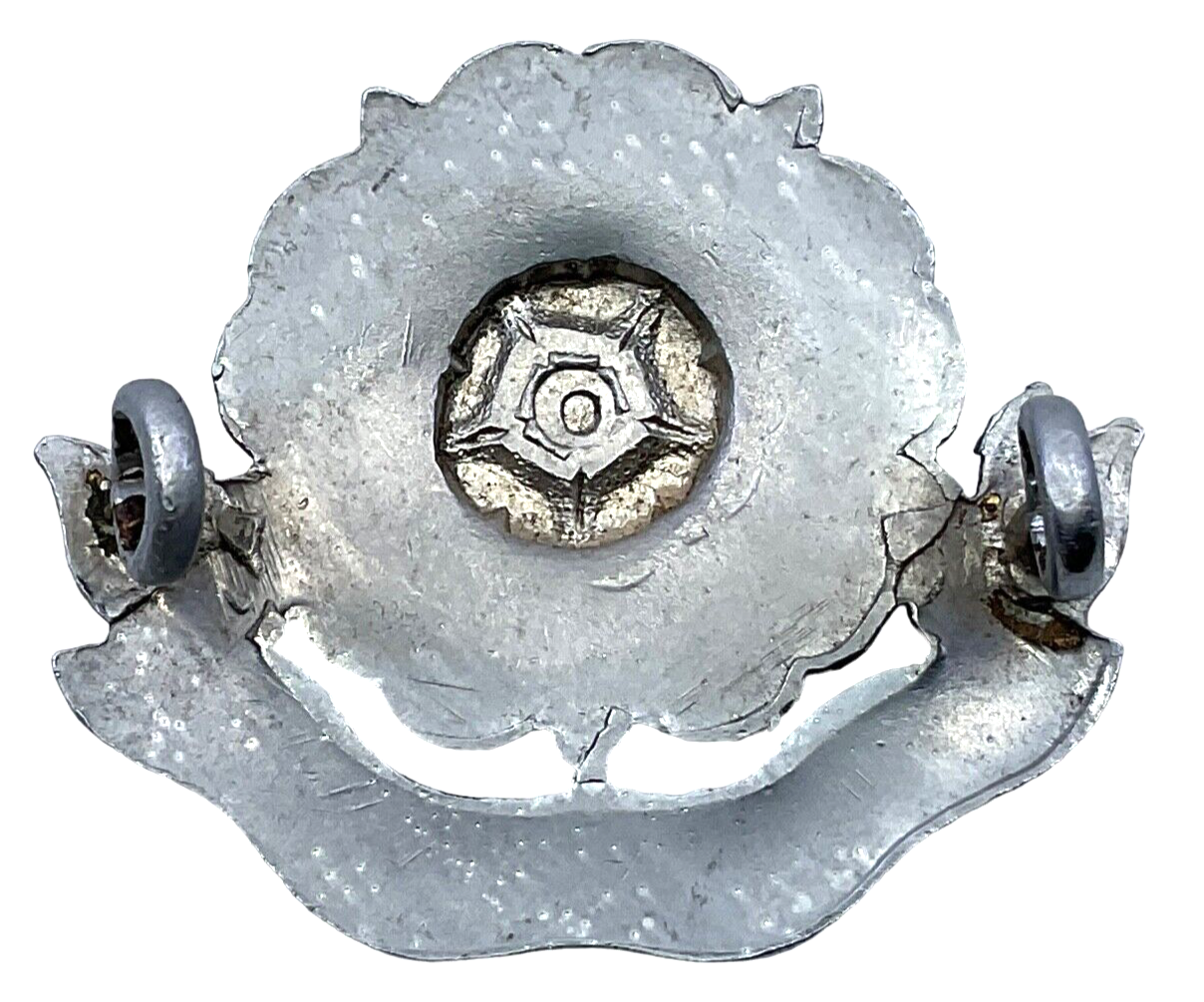 The British East Lancashire Officers Cap Badge Insignia, measuring 1.5 inches, is a distinguished emblem symbolizing the valor and heritage of the East Lancashire Regiment. Finely crafted, this badge typically features intricate details that highlight regimental pride, often incorporating symbols such as roses, crowns, or laurels, which are emblematic of the regiment’s distinguished history. This cap badge was traditionally worn by officers on their service dress caps, signifying their rank and affiliation. Collectors and historians alike cherish these pieces not only for their aesthetic appeal but also for their historical significance, representing a tangible link to the military heritage of the British Army. Whether displayed as part of a curated collection or studied for historical research, this insignia serves as a poignant reminder of the bravery and service of the officers who proudly wore it.