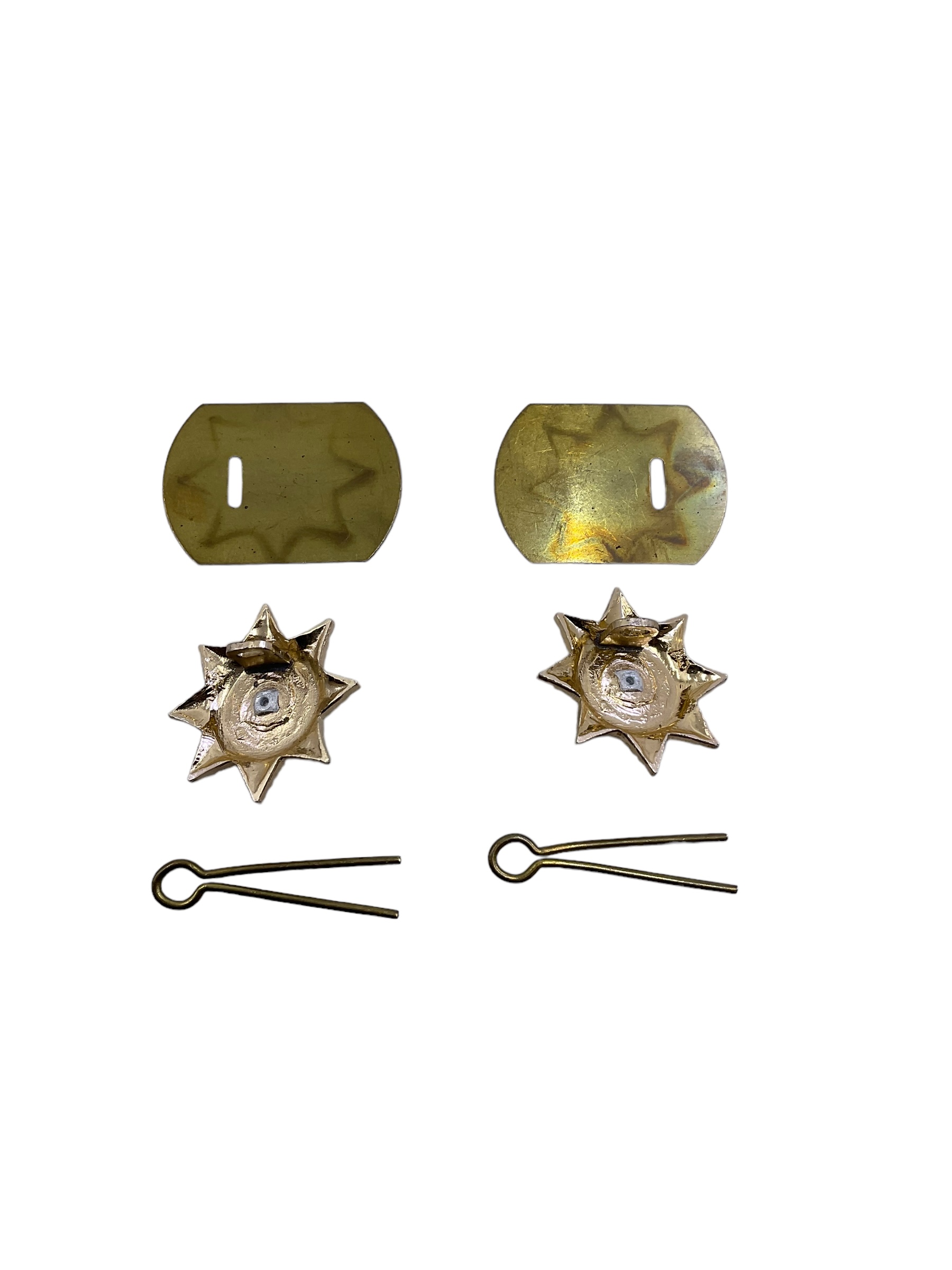 The British East Yorkshire Regiment Staybright Collars Insignia Pair is a set of gleaming, anodized aluminum collar badges that represent the distinguished heritage of the British Army’s East Yorkshire Regiment. These insignias feature intricate detailing that reflects the regiment’s proud history and service. Made from Staybright material, these collar badges offer a brilliant and long-lasting shine, ensuring they remain a striking accessory for anyone dedicated to preserving military tradition. Ideal for collectors, history enthusiasts, or as a poignant gift for military personnel, this insignia pair serves as a testament to the valor and commitment of the regiment. Each piece in the pair mirrors the other, creating a balanced and authoritative display when worn. Their durable construction ensures they retain their luster and quality over time, making them an enduring symbol of honor and pride.
