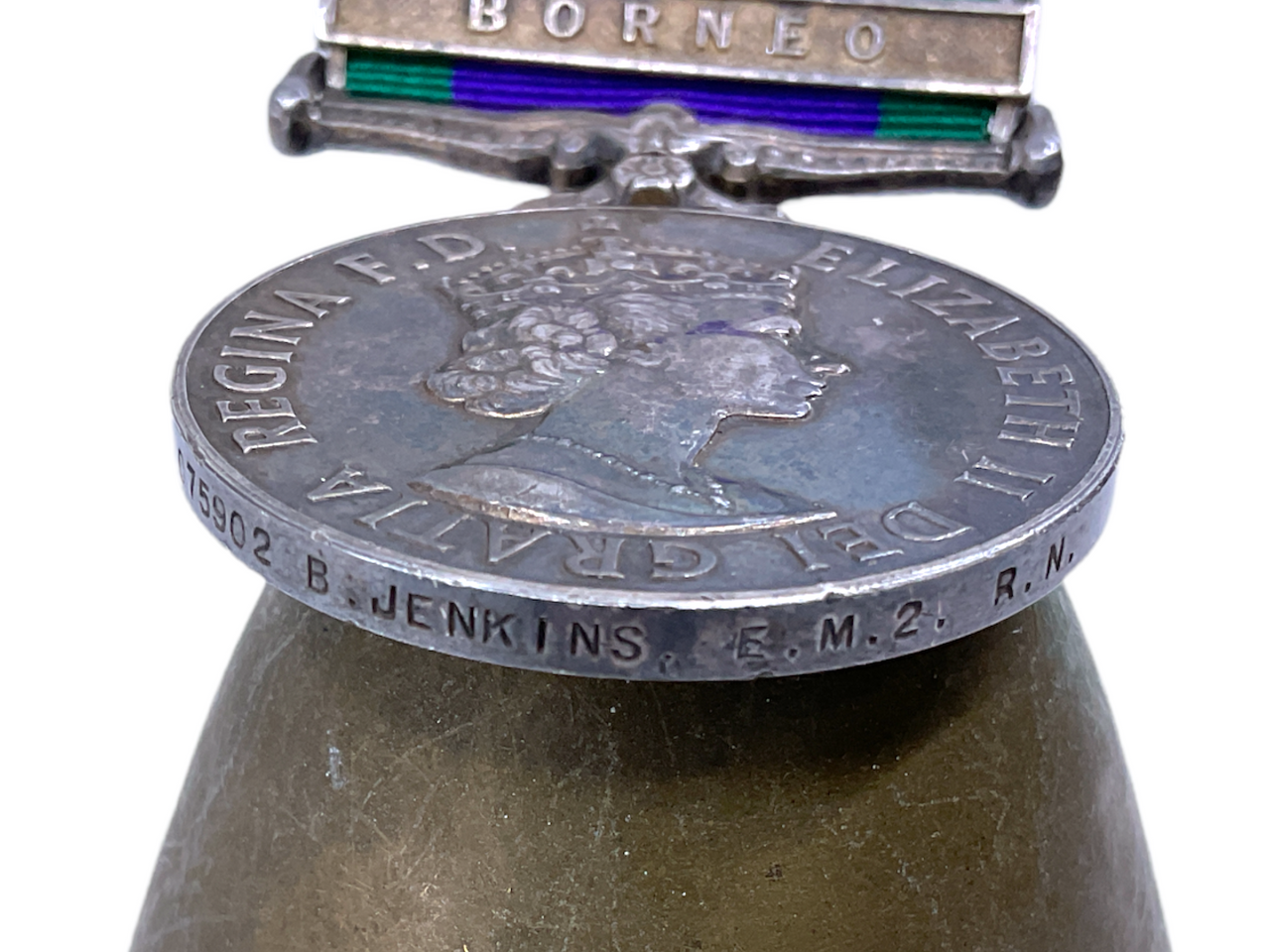 British General Service Medal & Borneo Bar B Jenkins Royal Navy