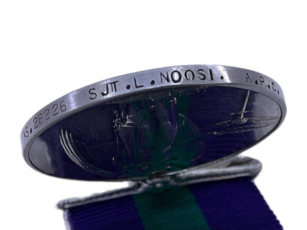 The British General Service Medal with Palestine Bar 45-48, awarded to members of the African Pioneer Corps, is a distinguished military decoration recognizing the exemplary service of African soldiers during operations in Palestine between 1945 and 1948. The medal features the effigy of King George VI on the obverse and a stylized depiction of an advancing victory on the reverse. The accompanying Palestine Bar signifies engagement in post-World War II peacekeeping and conflict operations in the Middle East. The African Pioneer Corps, renowned for their logistical support and engineering prowess, played a pivotal role during this turbulent period. The medal not only honors their bravery and dedication but also reflects the broader contributions of African servicemen to the British military efforts. This decoration stands as a testament to the valor and commitment of those who served in challenging conditions far from their homeland.
