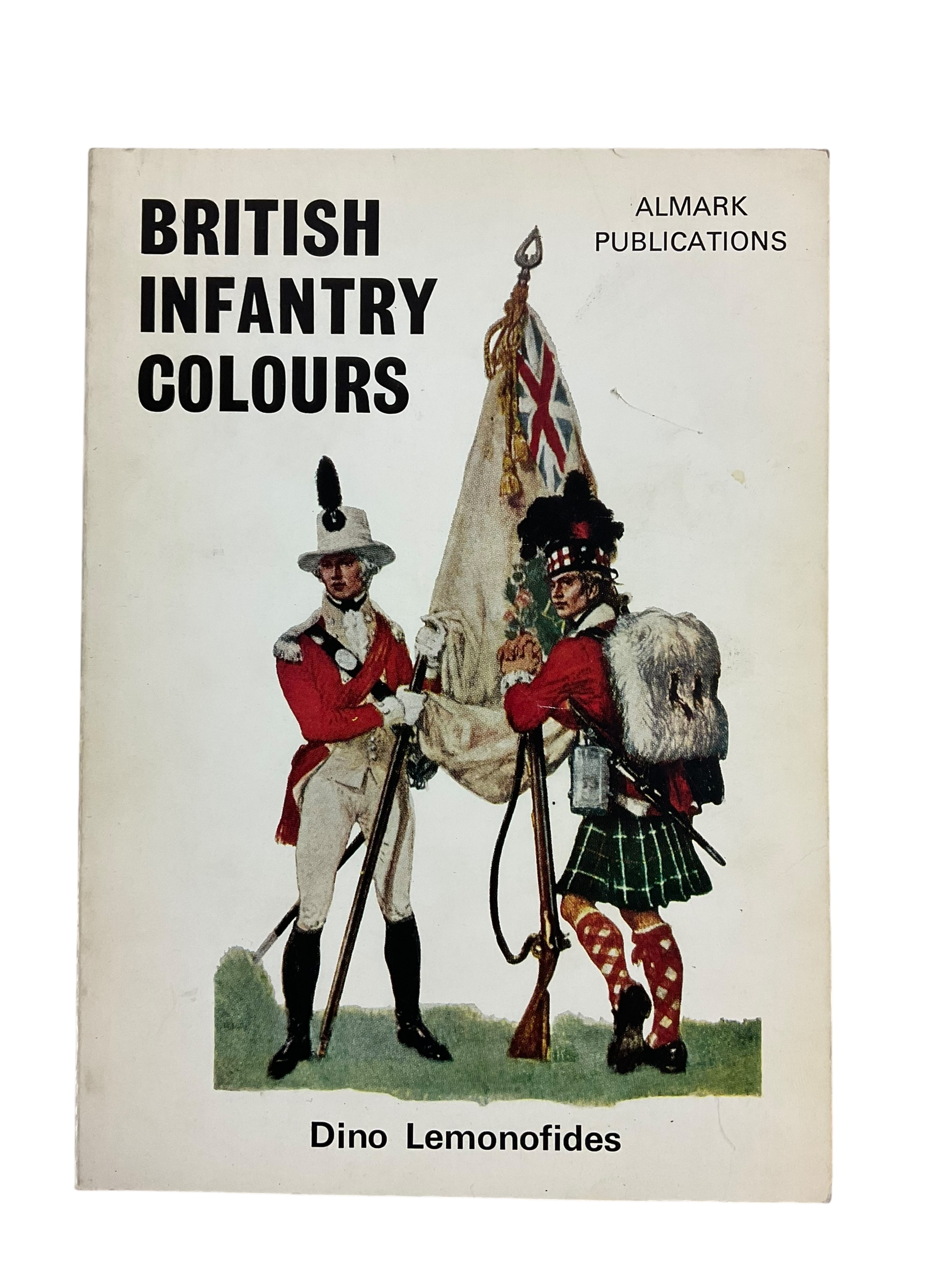 This is a used softcover British Infantry Colours Dino Lemonofides Almark Reference Book. Total of 56 pages with lots of pictures and information.