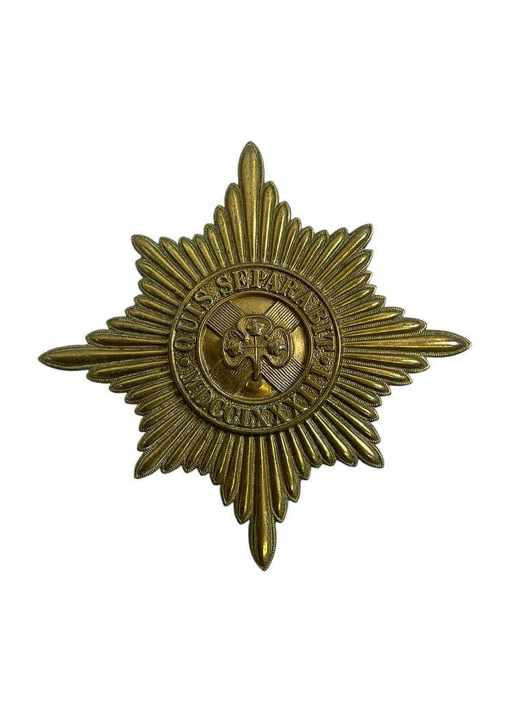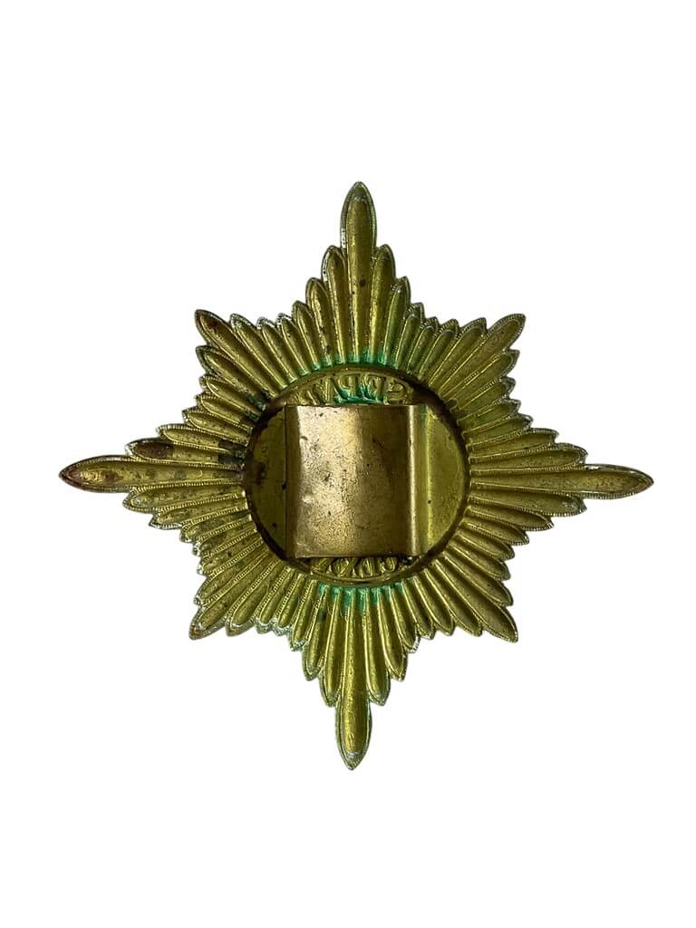 The ‘British Irish Guards Valise Pouch Badge’ is an exquisite piece of military insignia. It’s a distinctive emblem associated with one of the Foot Guards regiments of the British Army. This badge, often fixed onto a valise pouch, represents the Irish Guards’ rich history and honor. The design typically features a star of the Order of St Patrick, the national order of chivalry associated with Ireland. At the center, it usually showcases the royal cypher of the reigning monarch, surrounded by a blue circle inscribed with ‘Quis Separabit’ – the Irish Guards’ motto meaning ‘Who will separate us’. This badge is a cherished item for collectors and military enthusiasts alike, often signifying a deep respect for the British military and Irish Guards. It serves as a wonderful tribute to the brave soldiers who have served in this prestigious regiment.