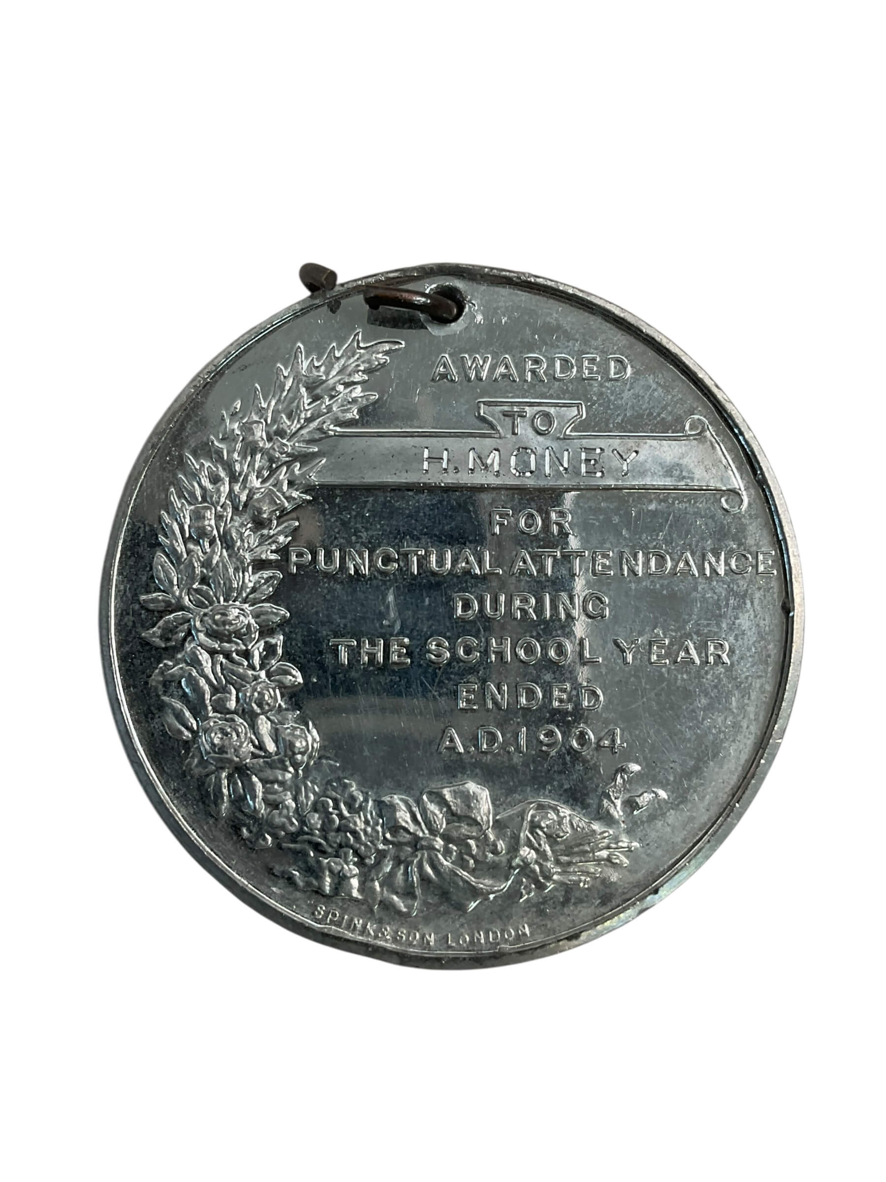British King Edward the 7th London County Council Punctual Attendance 1904 Named Medal Full Size