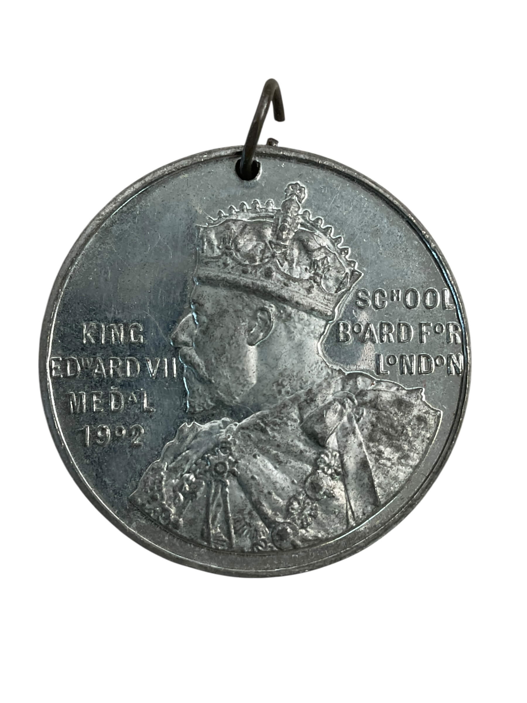 This is a full-size British King Edward VII London County Council Punctual Attendance Medal dated 1904. Issued during the reign of King Edward VII, this medal was awarded by the London County Council to recognize consistent punctual attendance. The obverse features a left-facing effigy of King Edward VII with the inscription encircling the portrait. The reverse is inscribed with the purpose of the award and bears the recipient’s details, individually named and dated. Medals of this type were commonly given to students or schoolchildren as a form of civic encouragement and were part of broader Edwardian-era educational and social welfare initiatives. Constructed in base metal as was typical for such awards, this piece measures the standard full-size format. The medal offers a direct connection to early 20th-century London educational practices and exemplifies period efforts to promote regular attendance in schools under the administrative oversight of the London County Council.