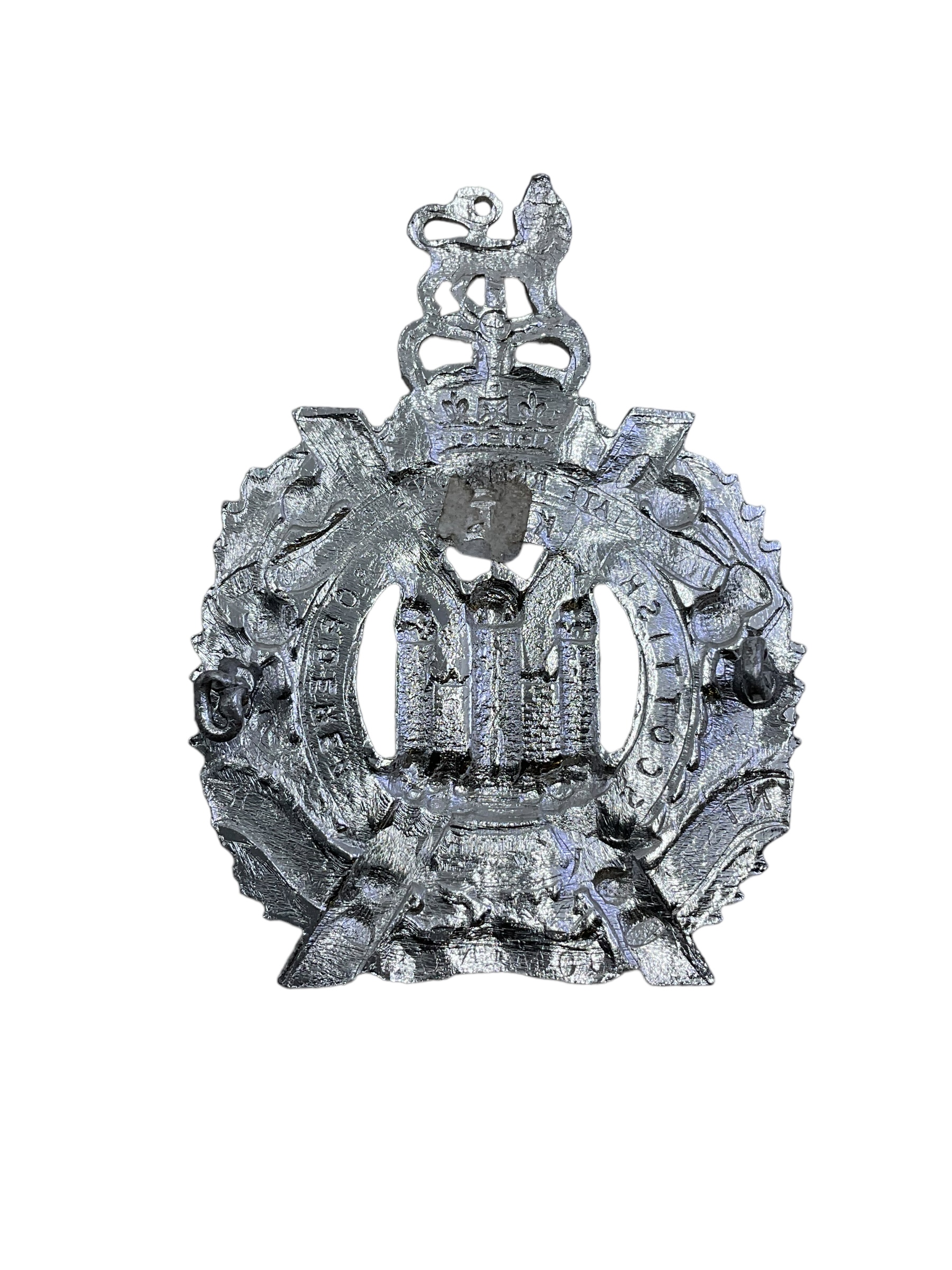 The British King’s Own Scottish Borderers Staybright Cap Badge is a significant emblem reflecting the storied history and pride of a distinguished regiment. This badge, crafted from Staybright, the durable and corrosion-resistant material, showcases intricate design and artistry, characteristic of military heraldry. Its luminous finish symbolizes the regiment’s enduring legacy and commitment. The detailed insignia features traditional elements, including the crown and crossed flags, which highlight loyalty to the crown and battlefield valor. Donning this cap badge, soldiers of the King’s Own Scottish Borderers carried a mark of honor and unity. This piece not only serves as a functional adornment for military headgear but also as a cherished collectible, embodying the spirit, tradition, and service of the British Army. Whether for a historian, collector, or a military enthusiast, this iconic Staybright cap badge stands as a testament to the bravery and heritage of the Scottish Borderers.