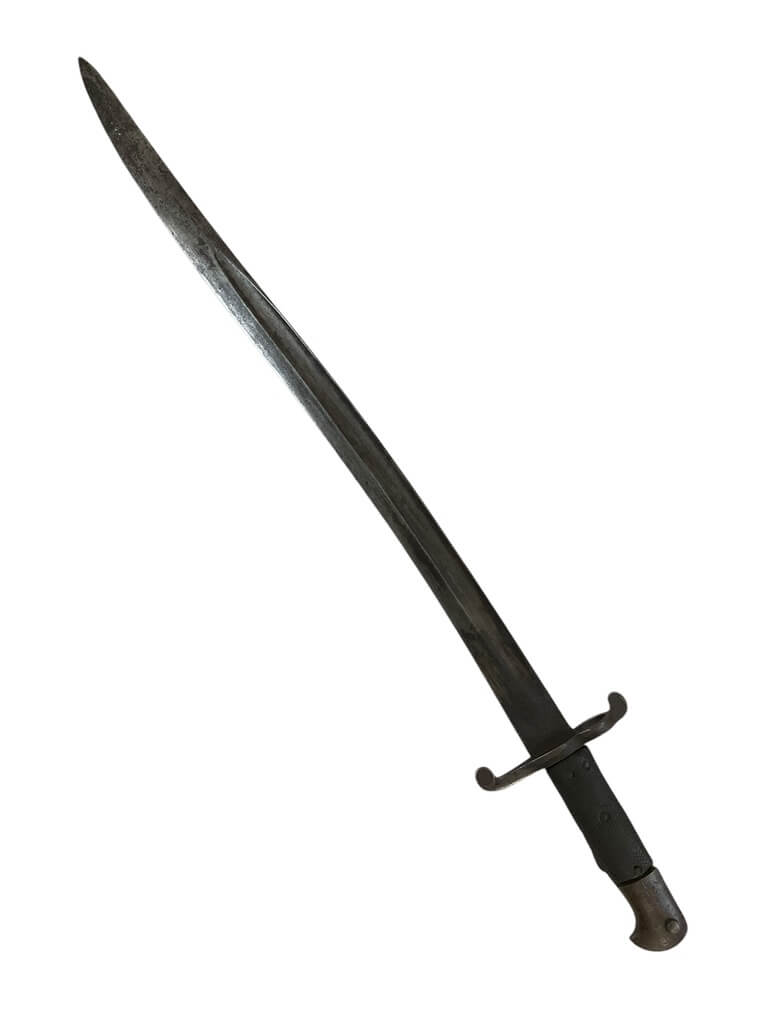 The British Martini-Henry Yataghan Sword Bayonet NO SCABBARD is an exquisite piece of military history. Originating from the Victorian era, this piece was part of the standard issue equipment for the British Army. It features a unique, curved Yataghan-style blade, designed for close combat and utility purposes. The bayonet is named after the Martini-Henry rifle it was designed to fit, a weapon widely used across the British Empire during the late 19th century. The handle is made from sturdy steel and is intricately designed, reflecting the craftsmanship of the time. Notably, this item comes without a scabbard. This bayonet is a must-have item for collectors of military antiques or enthusiasts of British history. It offers a tangible connection to a bygone era and the global influence of the British Empire.