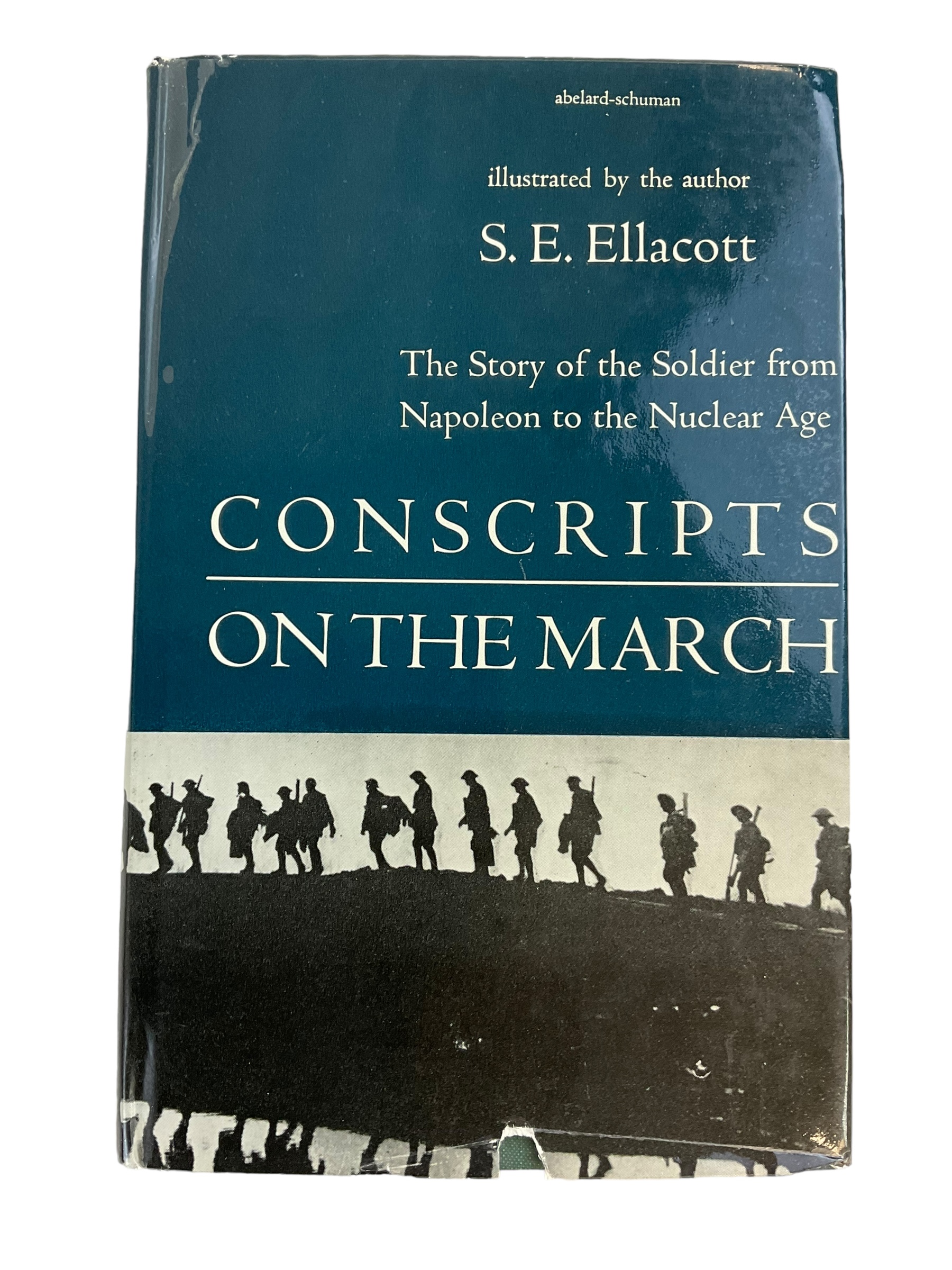 A used hard cover British Napoleonic WW1 WW2 Conscripts on the March SE Ellacott Reference Book. Total of 160 pages with lots of information