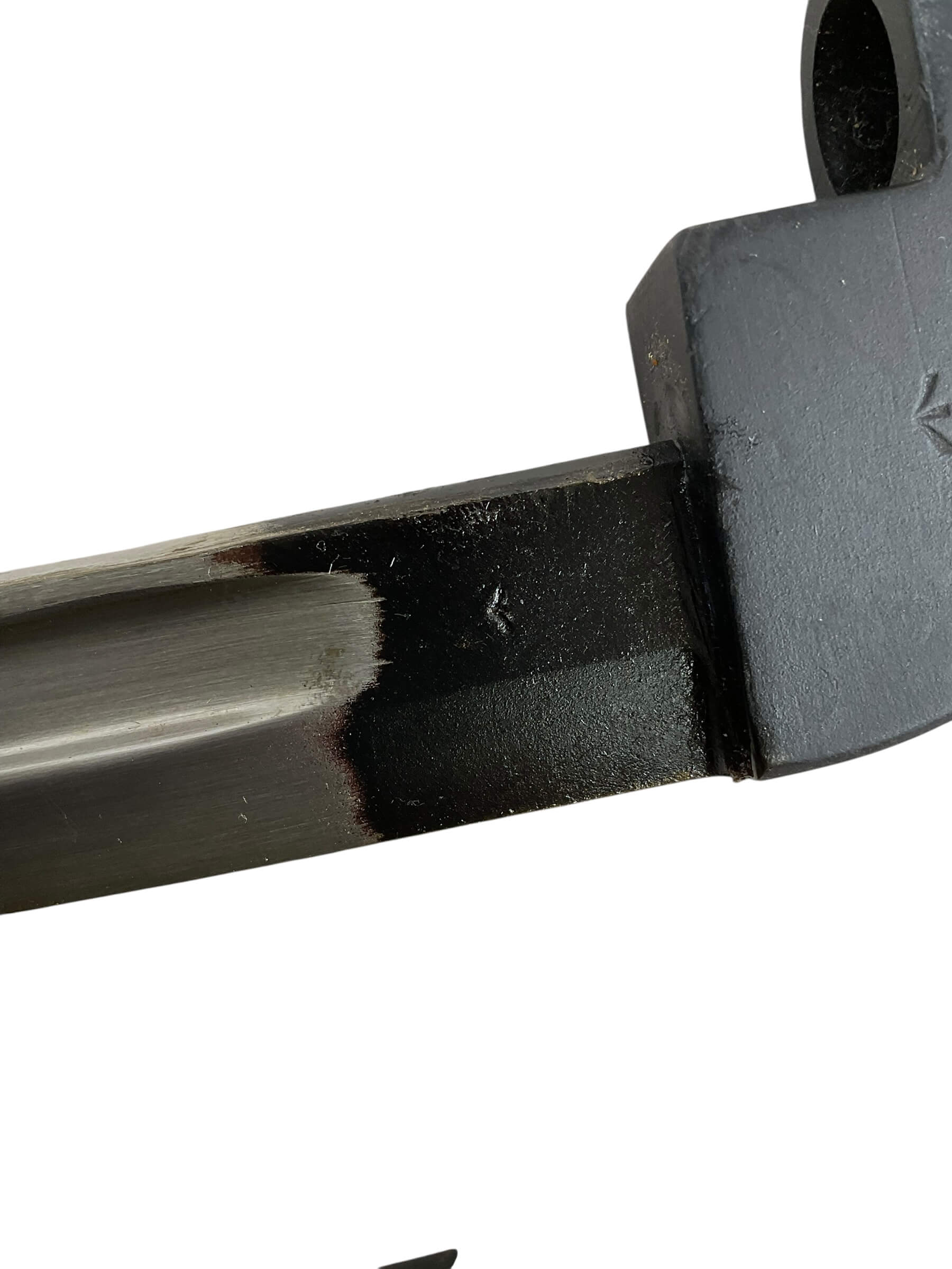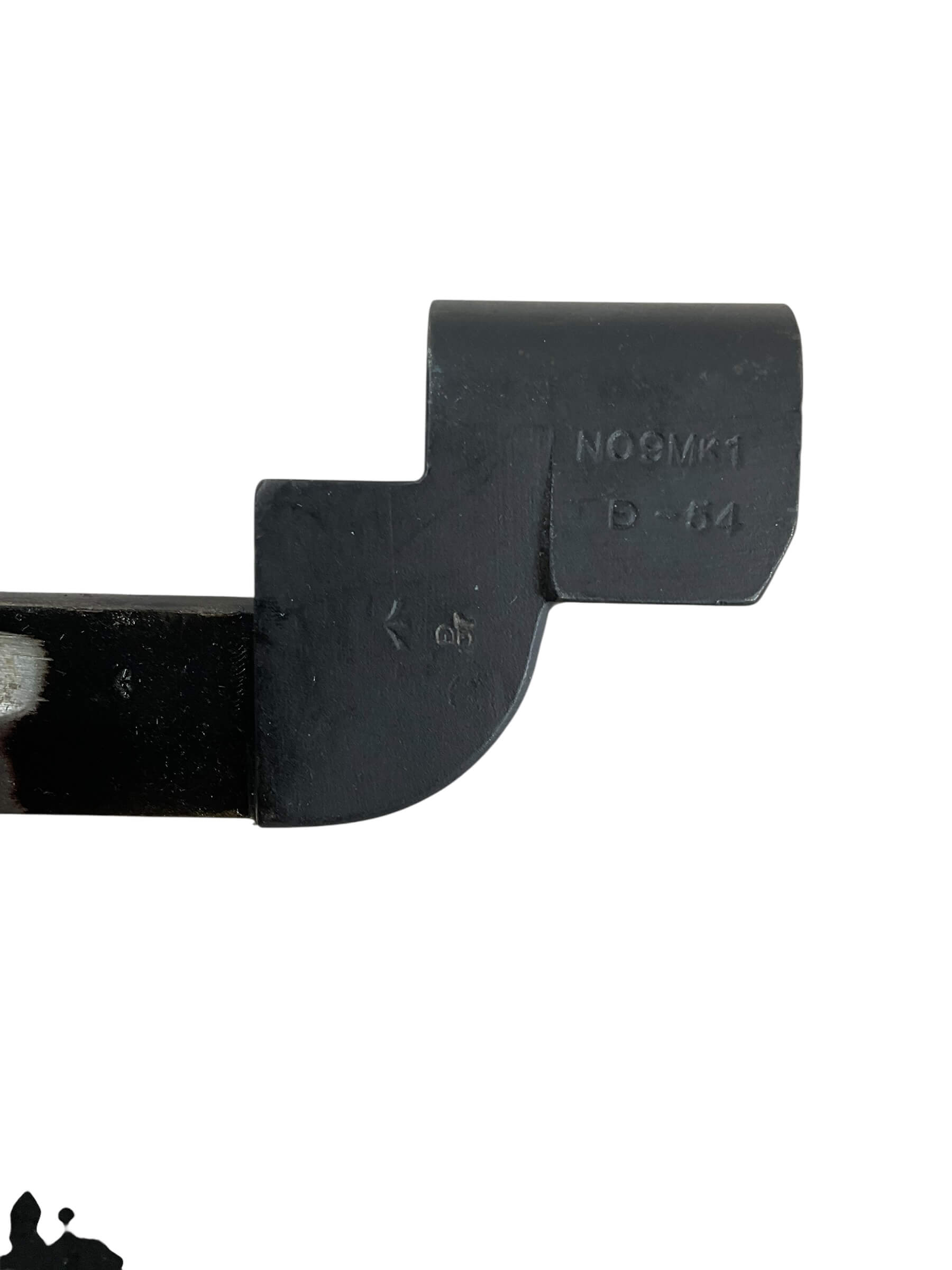 This is an authentic British Number 9 Blade Bayonet, intended for use with the iconic Lee Enfield Rifle. Crafted with meticulous precision, the bayonet is a testament to British military history and engineering prowess. The blade, numbered ‘9’, is forged from high-grade steel, providing it with a robustness and sharpness that is ideal for both combat and survival situations. The bayonet comes complete with a sturdy scabbard, designed to protect both the blade and the user. The union of the bayonet with the Lee Enfield rifle demonstrates a seamless harmony of design and function. This piece is not just a weapon, but a piece of history that speaks of the bravery and resilience of the British Armed Forces. It is a must-have for any military memorabilia collector or history enthusiast.